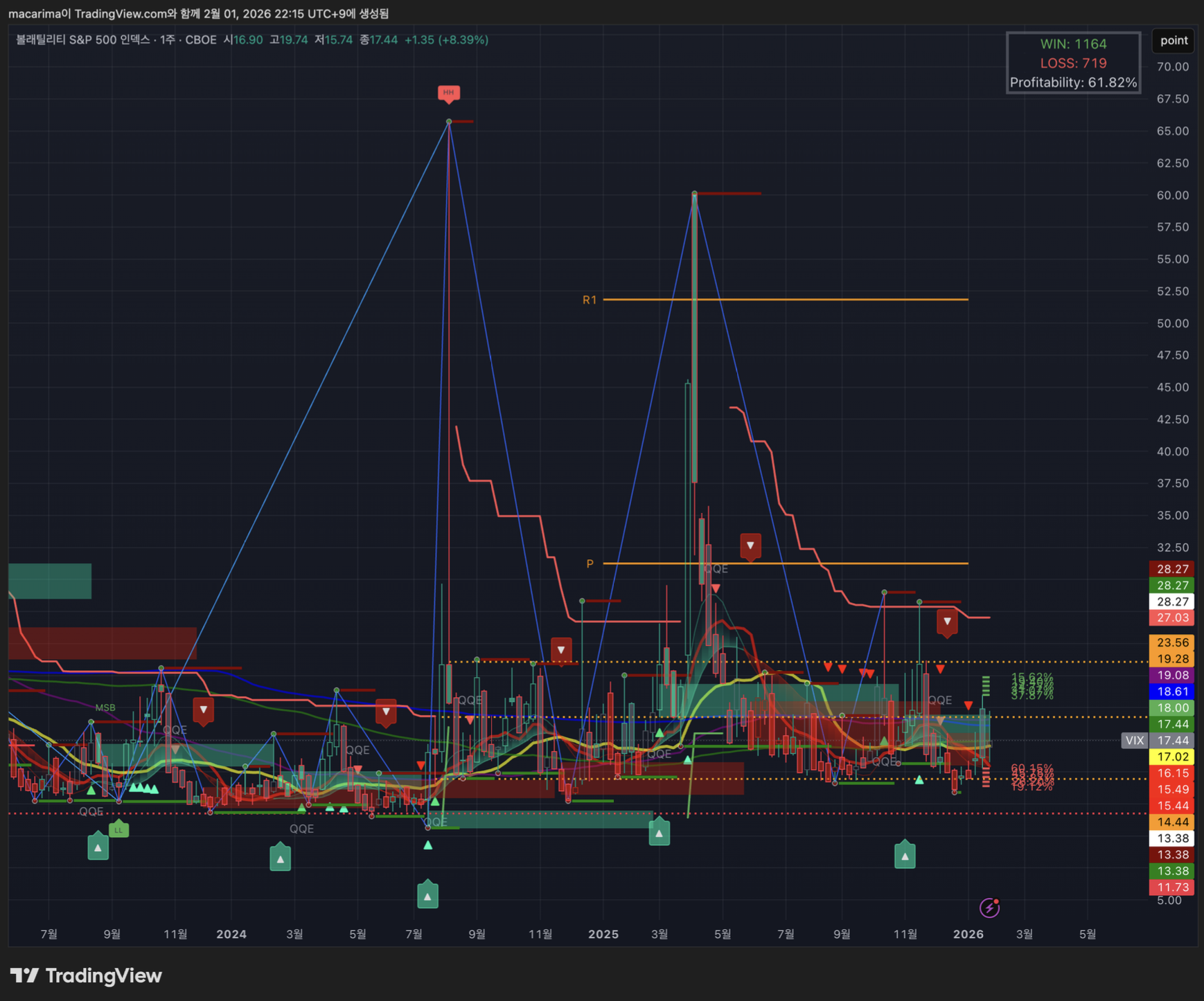 VIX는 지난주 상승분을 반납하면서 내려오긴 했으나 20주선은 지지한 모습. 꾸물꾸물 올라가는 모습이라 걱정스럽습니다.