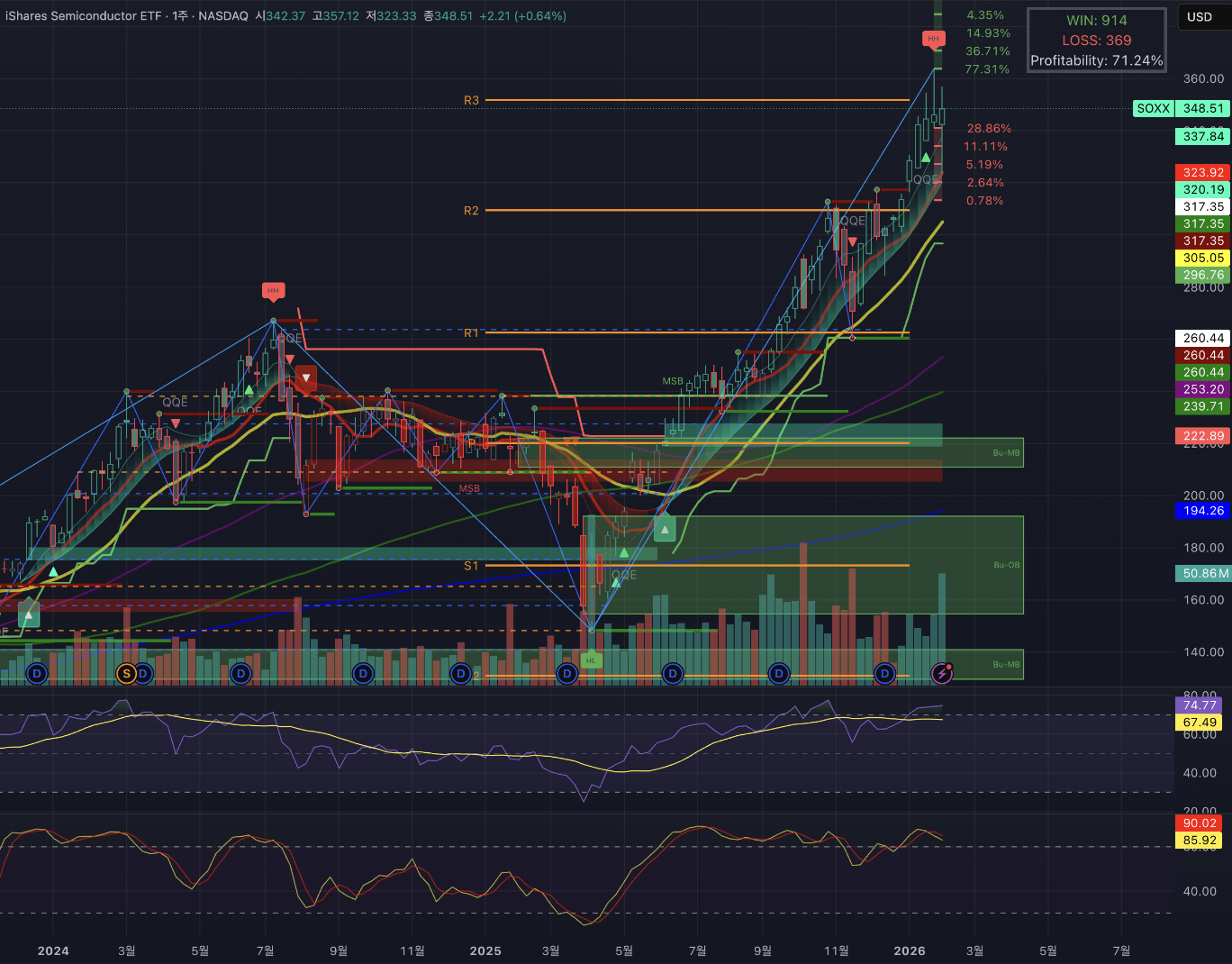 반도체 섹터가 가장 무빙이 컸는데, 10주선 지지하며 지난주보다 고점에서 종가 마감했습니다.