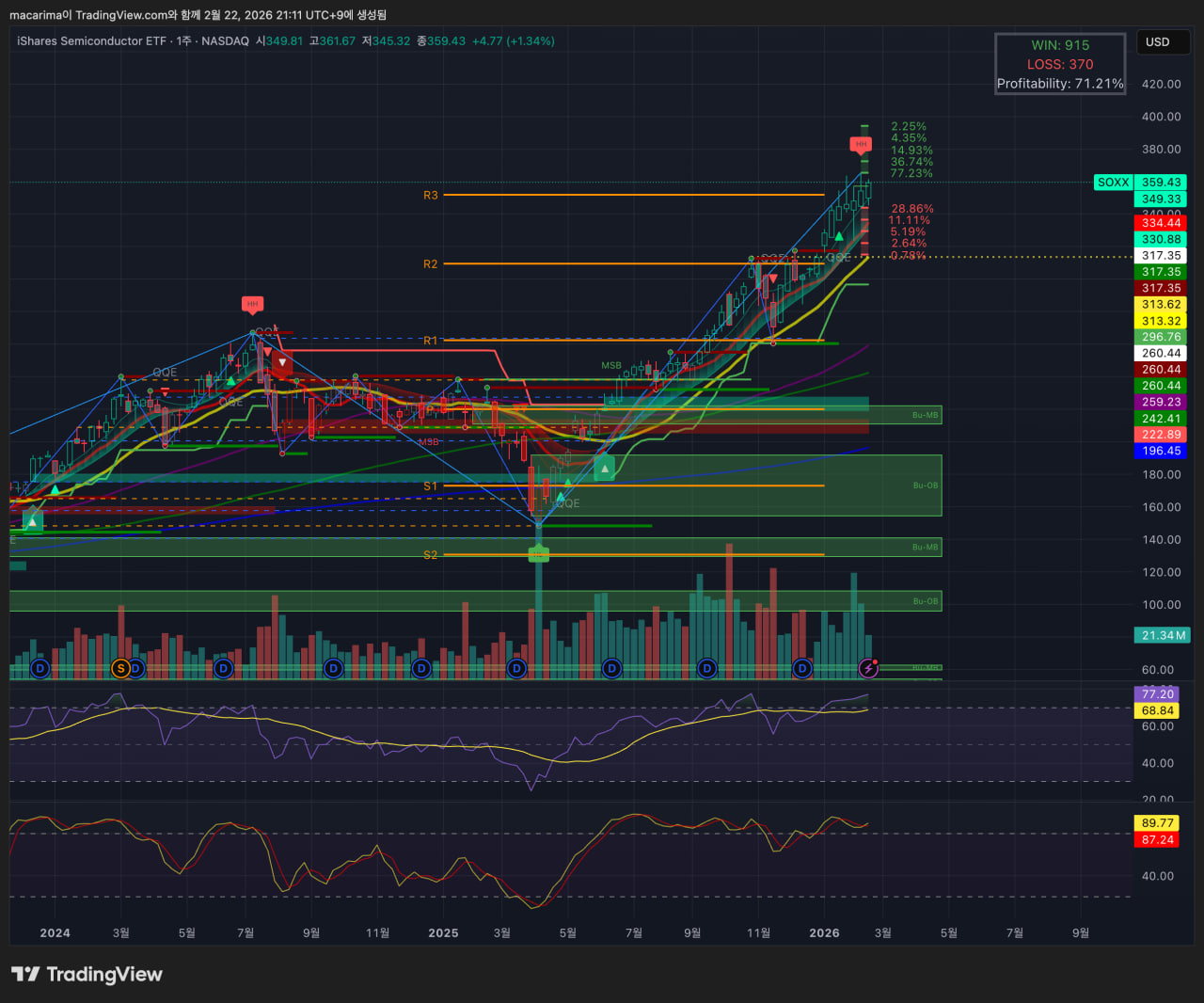 이번주도 반도체 섹터가 테크 섹터 중에서는 가장 강했는데, 이전 주보다 고점을 높이며 상승 마감했습니다.