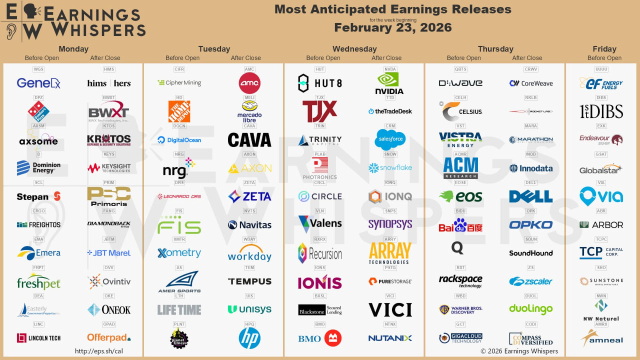 - 화요일: CB 소비자신뢰지수 (2월), 실적발표 (TEM, HP)