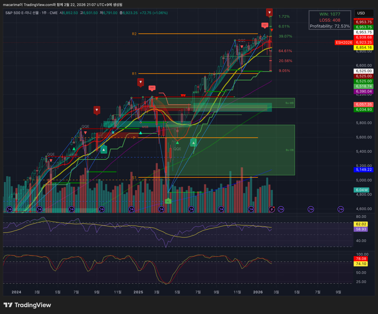 >M7을 추종하는 MAGS를 보면, 10, 20주선을 모아놓고 하방 돌파하여 추세 이탈하였습니다. 50주선까지 하방이 열려있는 것으로 보입니다. M7의 추세가 꺾이고, 나스닥100이 20주선을 이탈하면 과거 데이터 기준으로 1~8주간의 조정이 발생했습니다. 짧은 조정일 경우에는 경기방어 섹터는 큰 하락이 없는 편이었습니다. 따라서 다음주는 이런 섹터들의 움직임도 체크해야 할 것으로 생각됩니다. 현재는 패턴상 롤링리세션 상태이며, 기술주 위주로 추가적인 하락이 예상됩니다. 저점 매수는 급할 것이 없다고 생각합니다.>다음주는 상승과 하락 가능성을 3:7로 설정하고, 큰 반등에 나스닥 위주의 숏 베팅(정배열)이나 큰 하락 후에 눌림롱 외에는 베팅할 것이 없어 보입니다. 주요 지지선이나 저항선이 아니면 베팅은 엄금할 생각입니다. 장 색깔이 ...