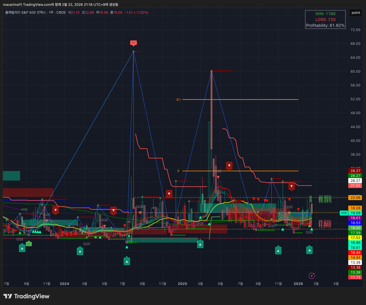 VIX는 상승했다가, 19까지 하락. 대충 지지선 근처입니다. 반등도 하락도 가능한데, 하락해서 20주선 지지 여부를 보는게 나을 것 같기도요....