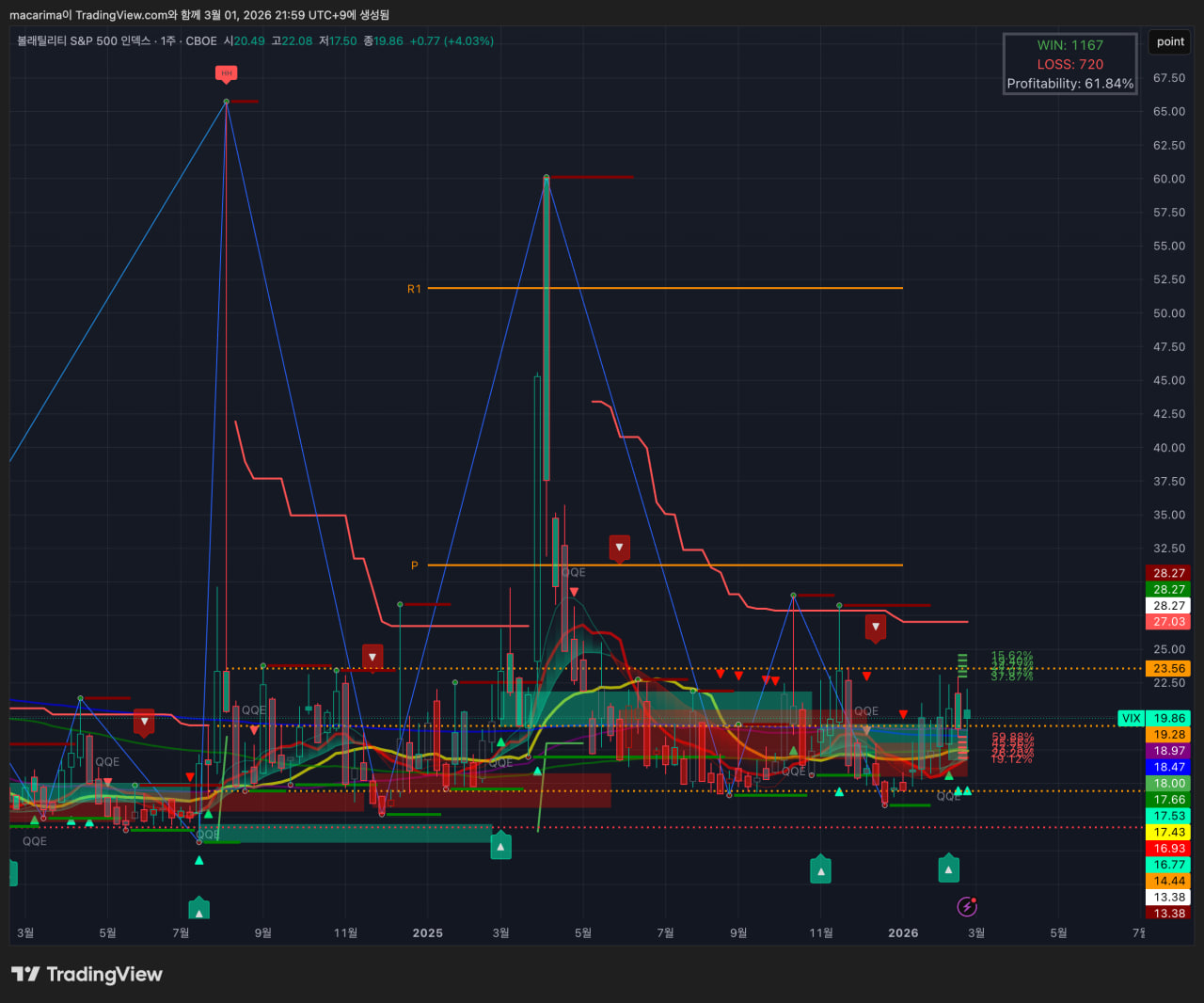 VIX는 지지선을 지지하고 추가적인 상승이 가능한 위치로 가고 있습니다.