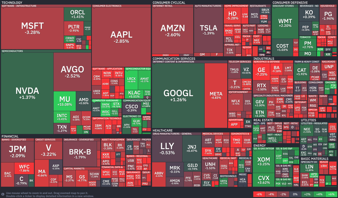 지난주에 이어 전쟁 여파로 에너지 섹터가 그나마 분전했을 뿐, 거의 모든 섹터가 하락했습니다. 개별 섹터로 보면 다음주 있을 GTC 기대감으로 NVDA와 메모리 섹터가 반등했고, 일부경기 방어주 종목들이 상승했습니다.