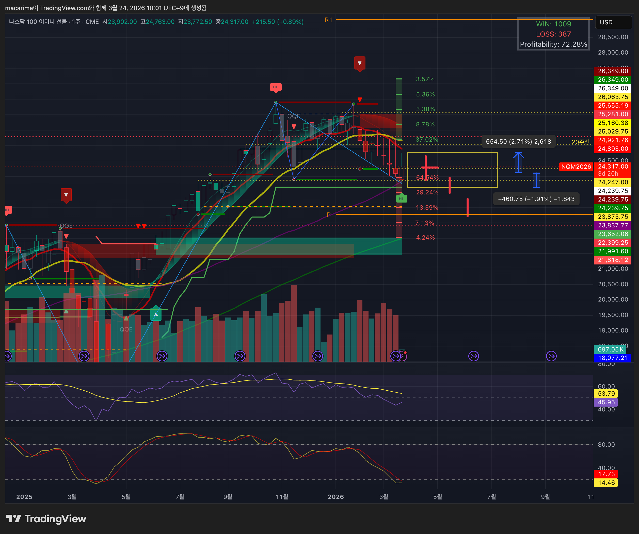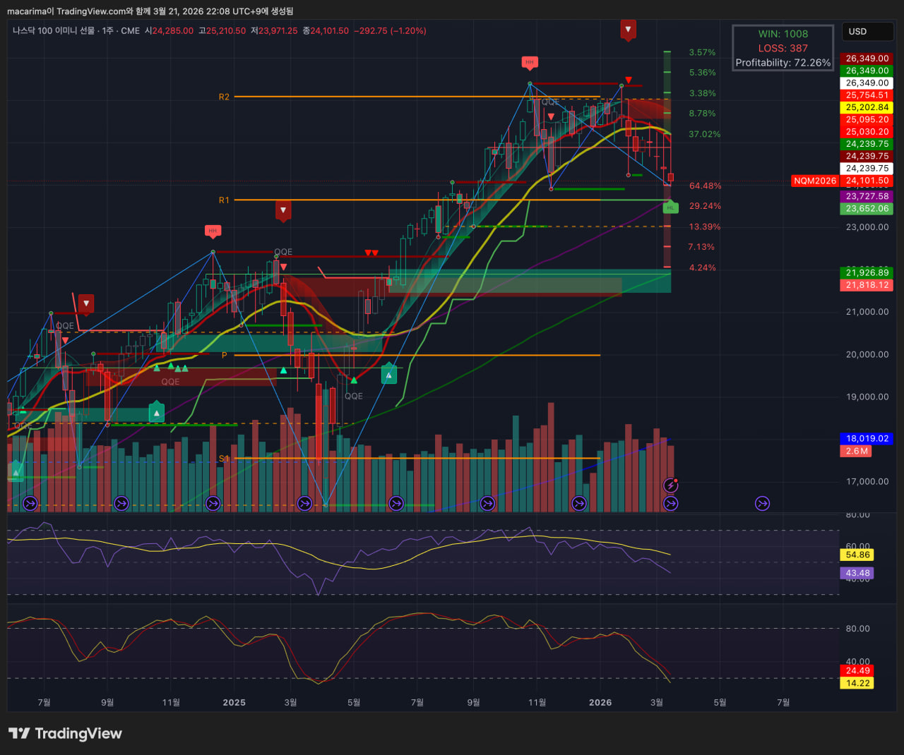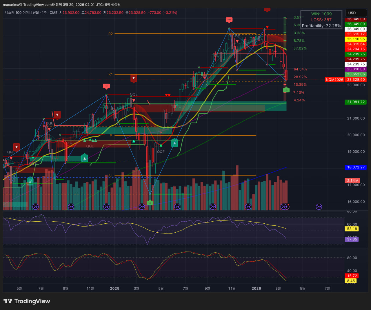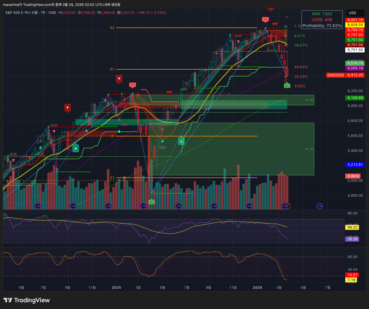 매크로적으로는 지난주에 이어 미국-이란 전쟁이 심화되며 확전 양상을 보였고(지난주 코멘트의 반복입니다), 트럼프는 타코를 시도했으나 이란 측에서 바로 이를 반박하며 효과를 지워버렸습니다. 이로 인해 트럼프의 발언에 대한 의구심이 점점 늘어나며, 타코 효과가 단기 변동성 제공 정도로 축소되기 시작했습니다. 여기에 주변 아랍국가들의 전쟁 참여, 이란의 계속되는 강경 노선으로 미국의 선택지도 줄어드는 상황입니다. 이와중에 인플레 소프트 지표들은 mixed 경향을 보였고, 연준 위원들은 전쟁으로 인한 인플레 상승을 경계하는 발언을 함으로써, 금리 인하 기대감을 더욱더 축소시겼습니다.