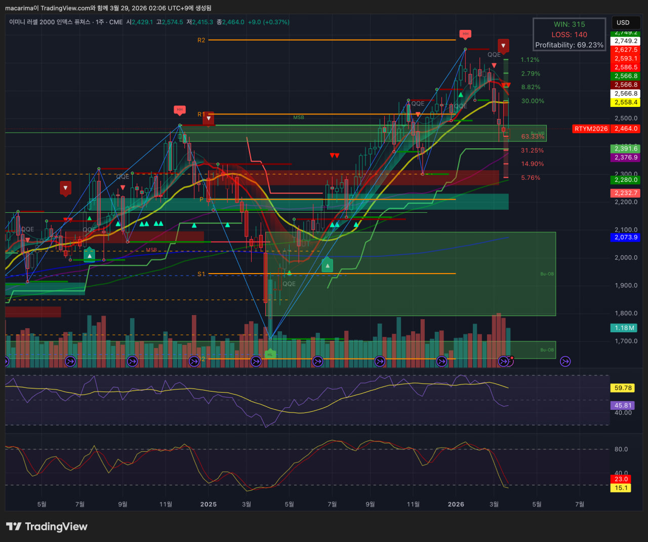 러셀 2k은 저가 매수가 들어오며 지지선 반등했으나, 반등폭이 축소되며 보합 마감했습니다.