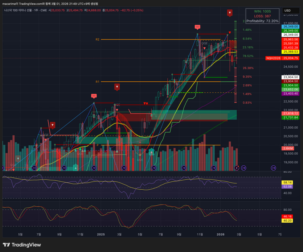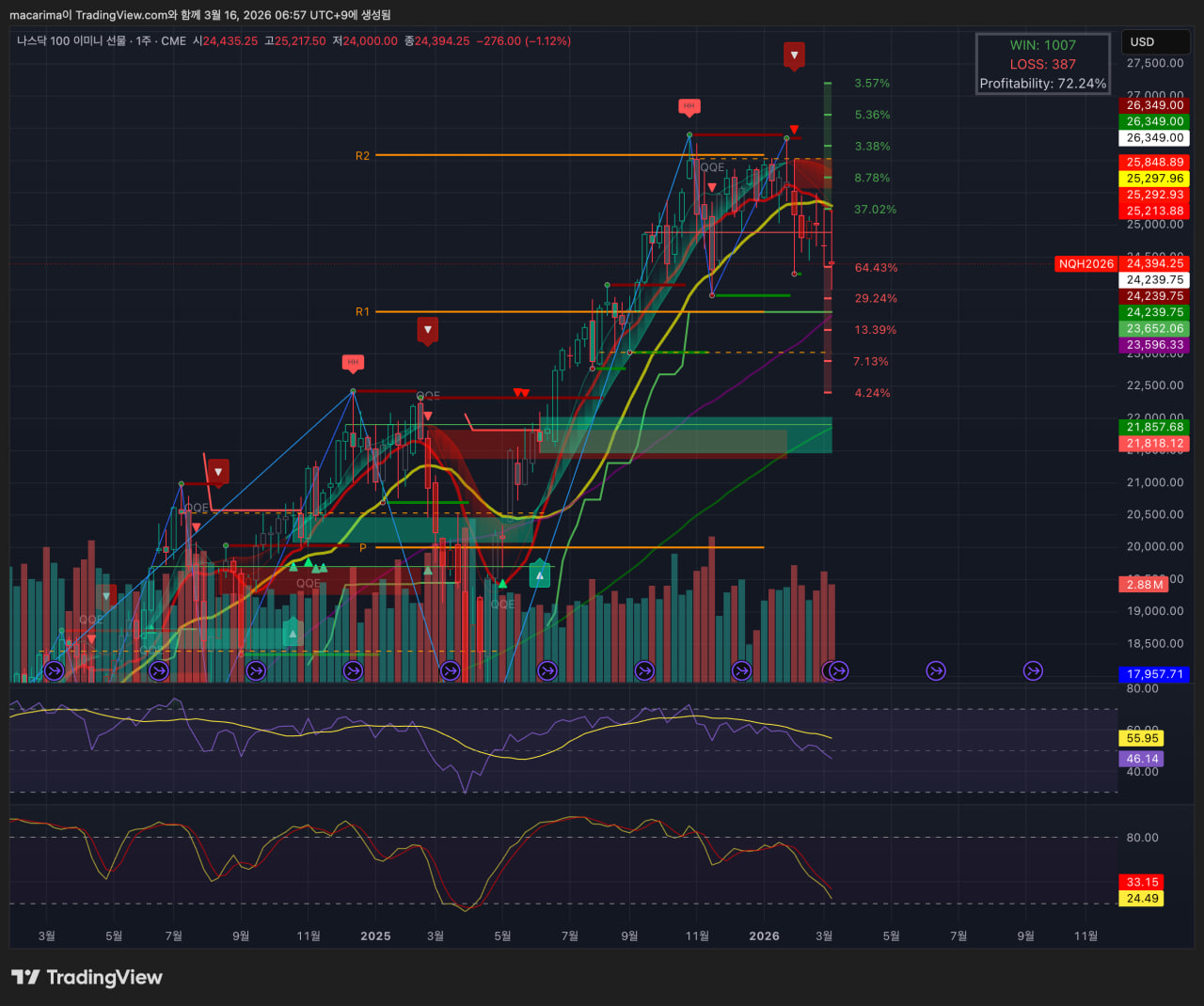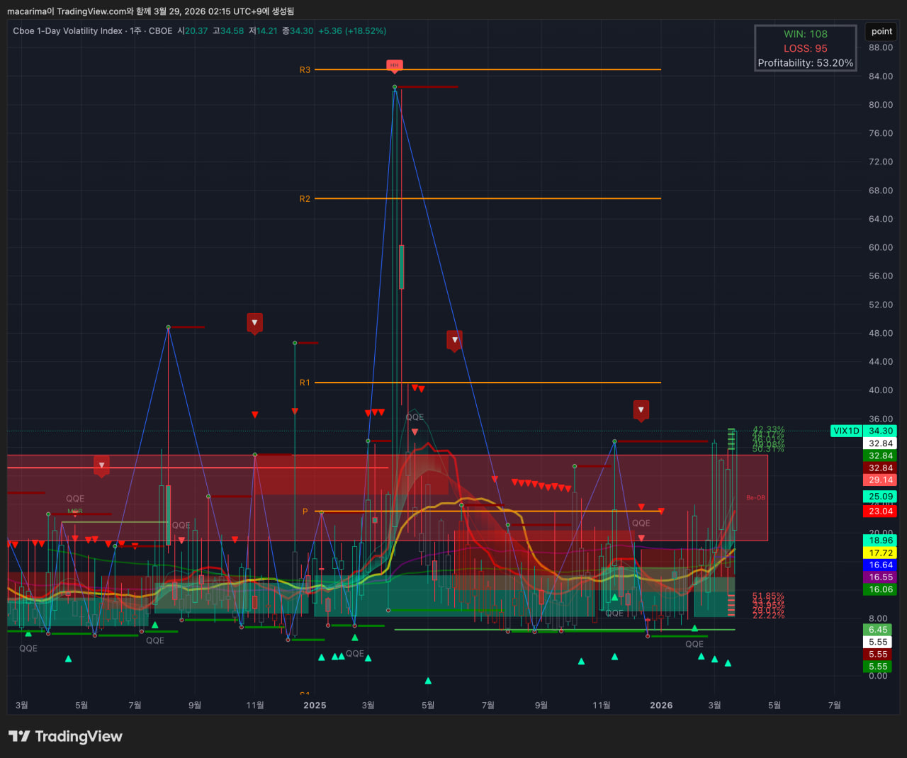 VIX1D는 3주전의 고점을 돌파하며 마감했습니다. 주말간 전쟁 확대 국면 가능성을 반영하는 것 같습니다.
