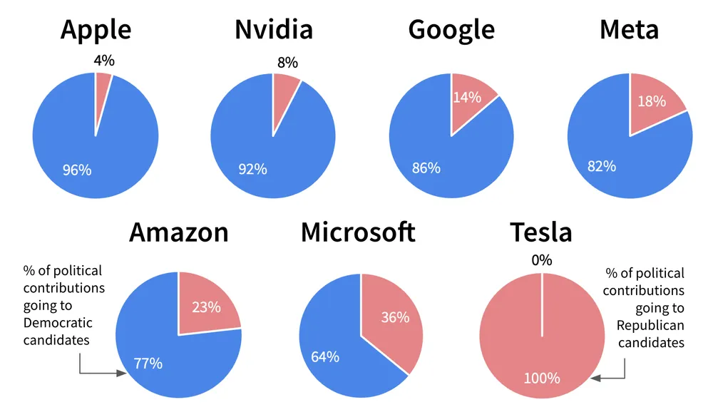 공화당에 지원금을 4%밖에 내지않았네요. 이부분에서 애플 vs 마소or구글을 생각하기도 했습니다.
