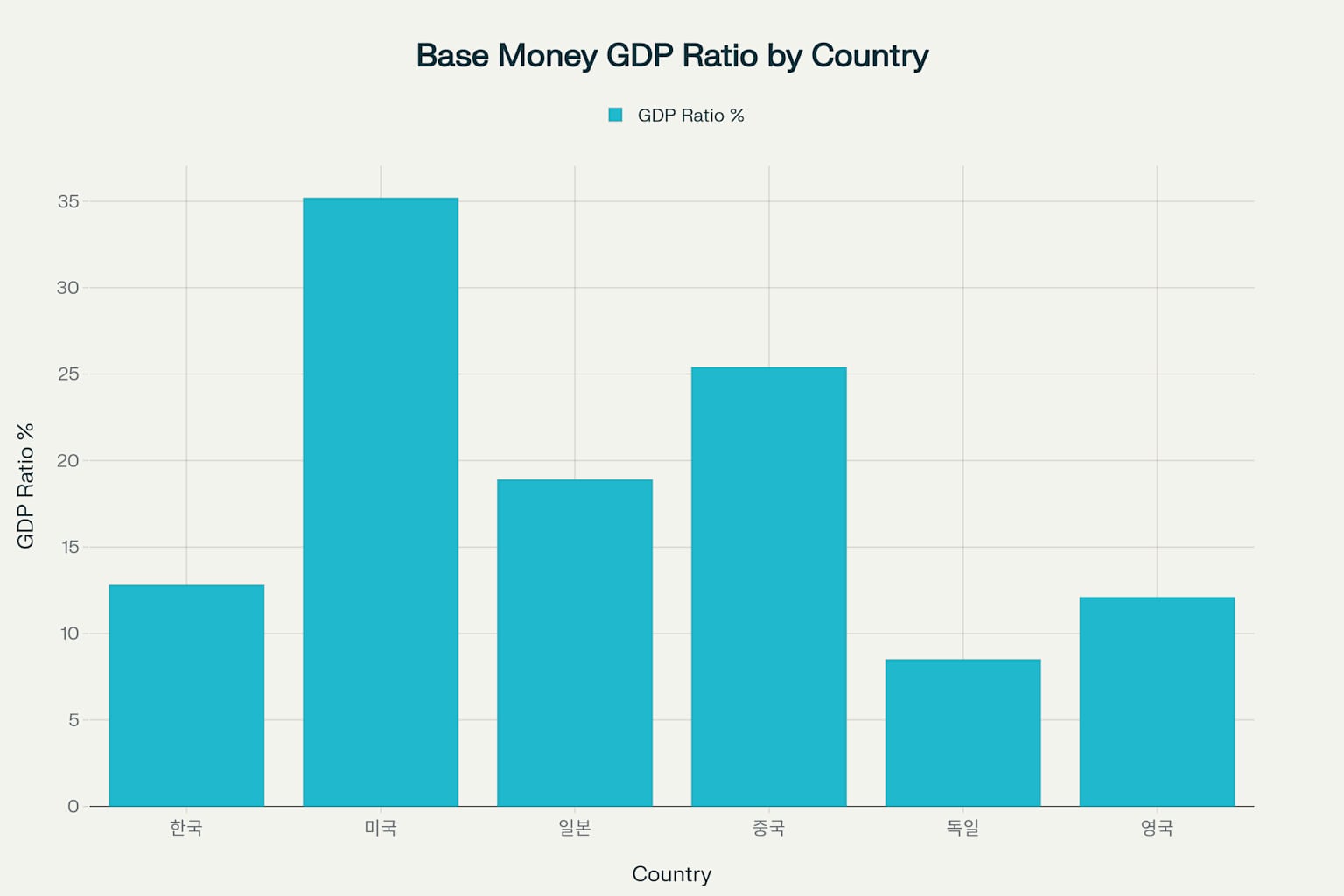 한국의 본원통화 규모를 국제적으로 비교해보면, GDP 대비 본원통화 비율이 12.8%로 주요 선진국 중 중간 수준을 나타낸다5. 이는 미국의 35.2%, 일본의 18.9%보다는 낮지만, 독일의 8.5%나 영국의 12.1%와 유사한 수준이다5. 한국의 본원통화 운용은 상대적으로 안정적이고 보수적인 특성을 보여준다고 평가할 수 있다1113.