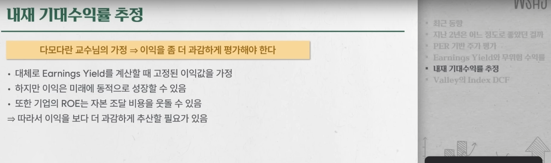 다모다란 교수님 주식전체시장의 PER기반으로만 평가하여 주식을 투자하기에는 확실하지 않다고 함.