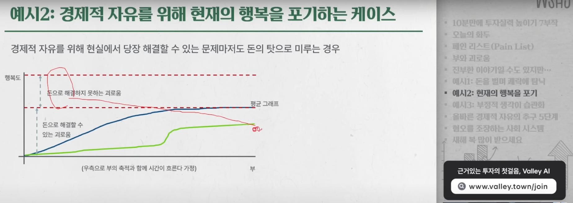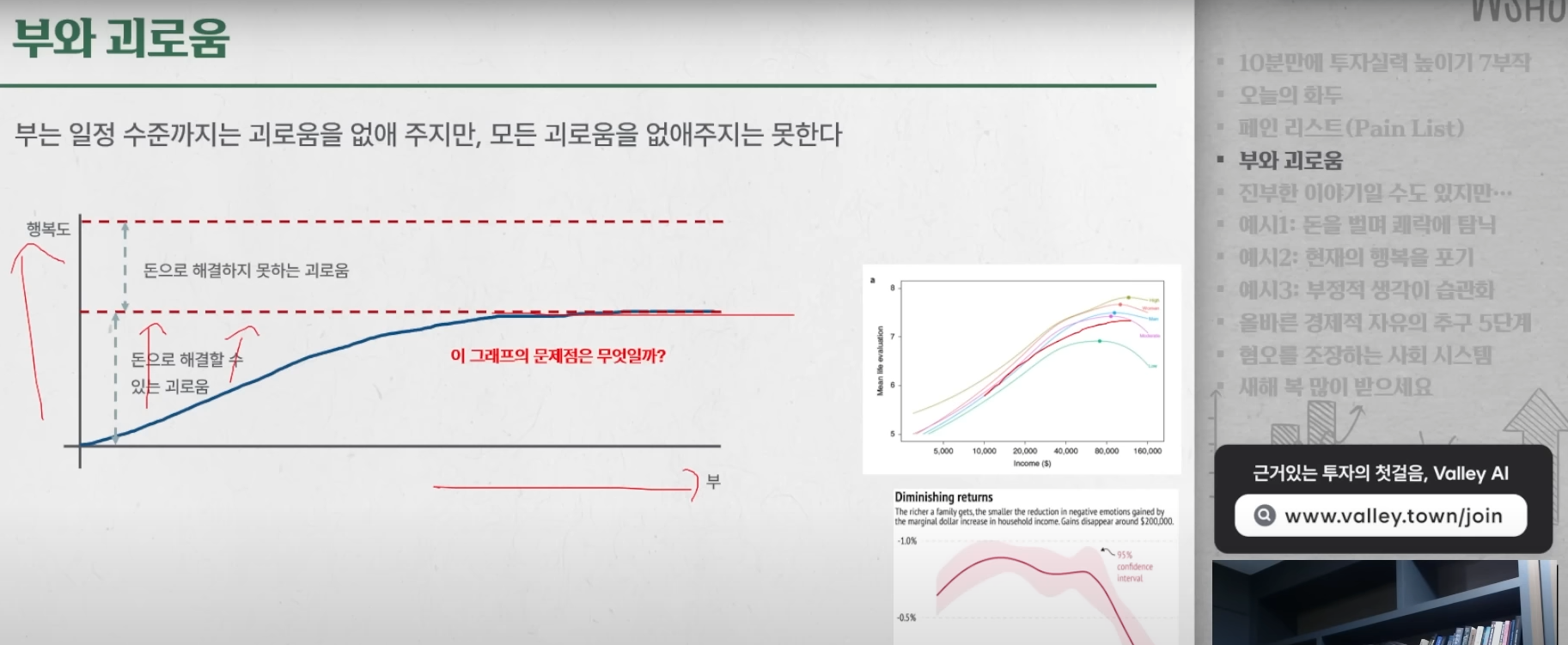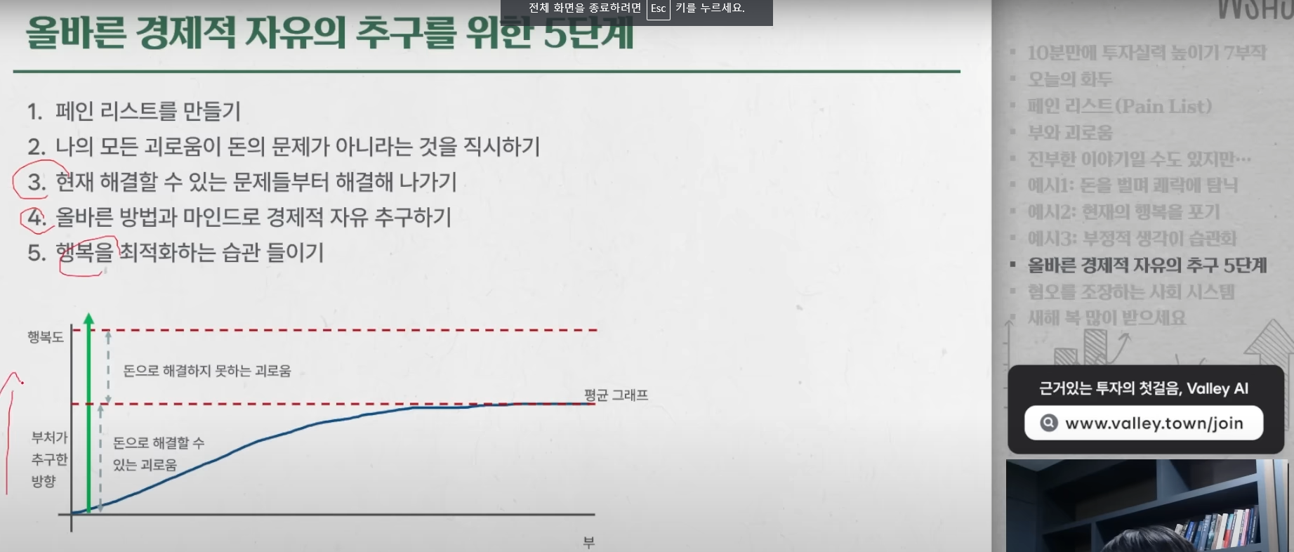 2025.01.30작성버킷리스트가 아닌 괴로움 리스트를 만들어보자.나만의 페인 리스트??직장에서의 진취적인 성공 및 전문분야에 대한 전문가 압박?연봉?투자공부에 대한 방해물들??건강문제?흠 돈으로 해결이 가능한 문제점은 뭐가 있을까회원가입만 해도이 글을 무료로 읽을 수 있어요.회원가입이미 계정이 있으신가요?로그인하기