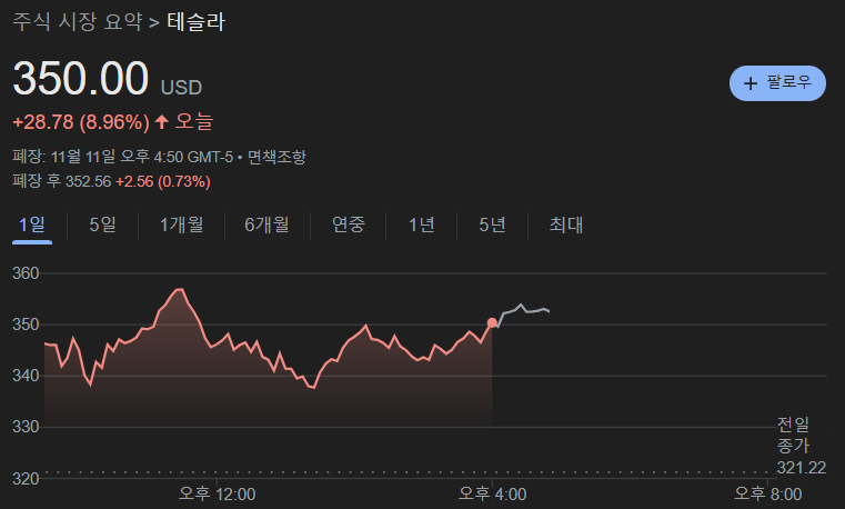 트럼프 트레이딩의 연속으로 머스크 테마로 비트코인/테슬라가 어마어마한 상승세를 동반하고 있기 때문입니다.