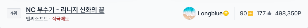 올해 3월, Valc 최초 국장 매도 의견과 함께 역대 어그로로 1등을 자부했던 『NC 부수기 - 리니지 신화의 끝』을 출품했습니다.