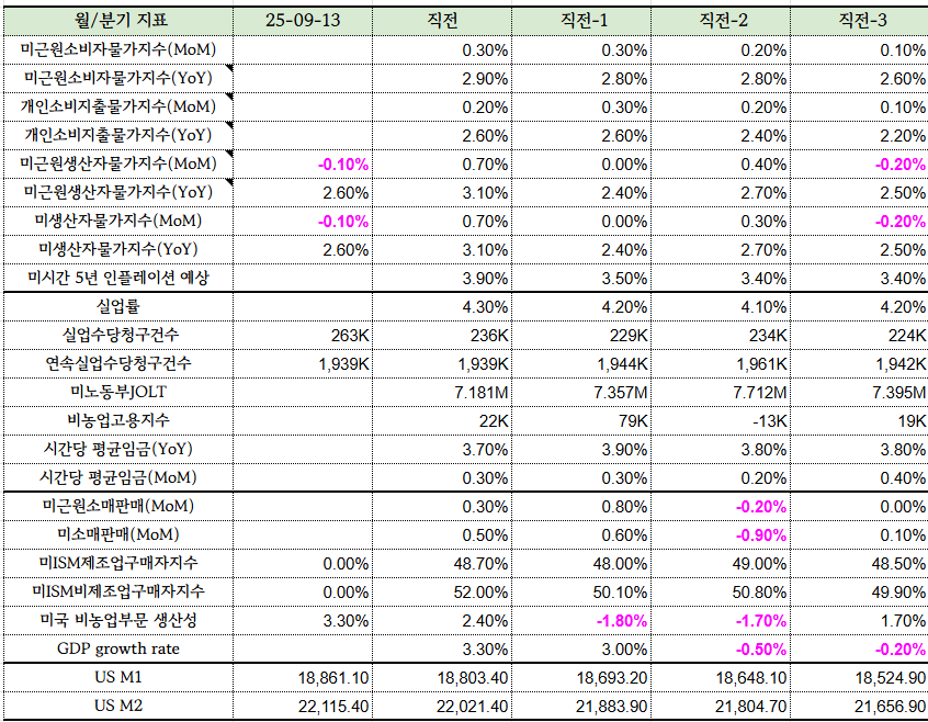 미국시장은 1~2% 상승률을 보였고, 한국시장은 이재명 대통령의 주식시장 활성화 의지가 반영되고 반도체 솔림에 따라 크게 상승했다.(코스피 6%, 코스닥 4%) 금리하락 국면에서는 코스닥이 더 상승해야 했지만 주식시장 활성화 정책이 더 크게 시장에 반영된 듯하다. 다음주에는 약간의 반락이 예상된다. 2주동안 쉬지 않고 상승하기도 했고 연준의 금리인하 발표는 "뉴스에 팔아라"는 내러티브를 작동시킬 수 있다. 매수의 기회다.