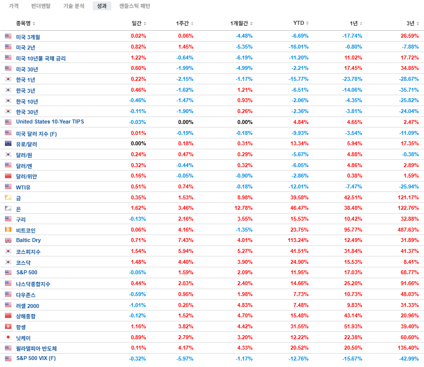 본격적인 금리 인하 신호에 금과 은은 지난주에 이어 크게 상승했고 구리 역시 2% 이상 상승했다. WTI는 0.74% 상승했고 BDI는 지난주 2% 하락에서 7% 상승으로 크게 반전했다. 구리선물을 매도한 것은 역시 실수였던 것 같다.
