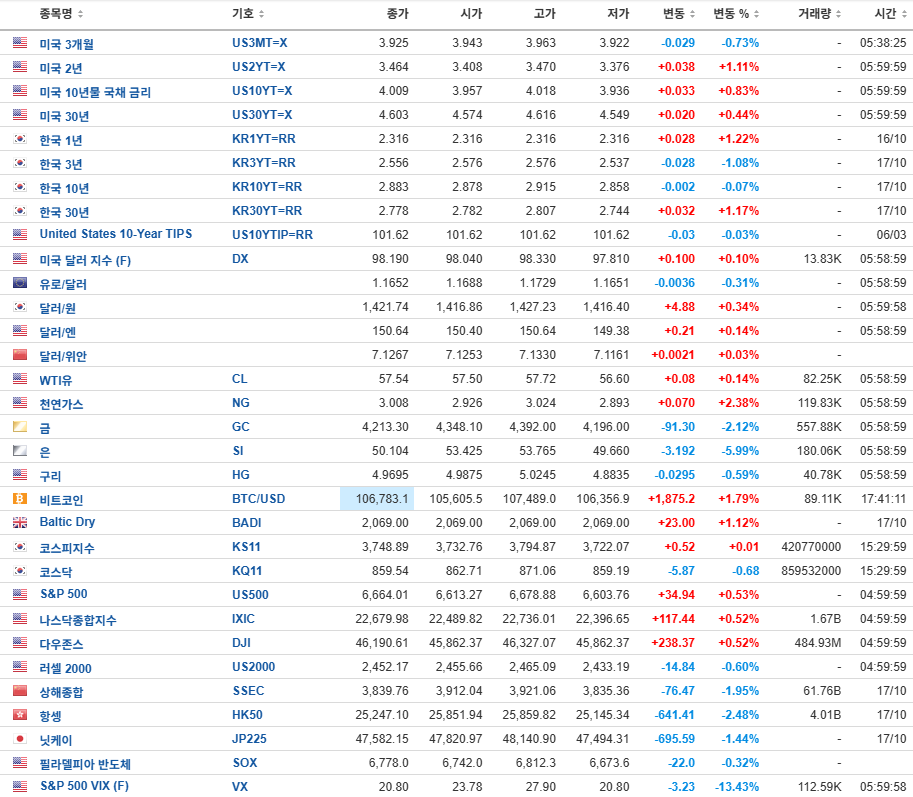 <시장의 주요지표, 20251018>