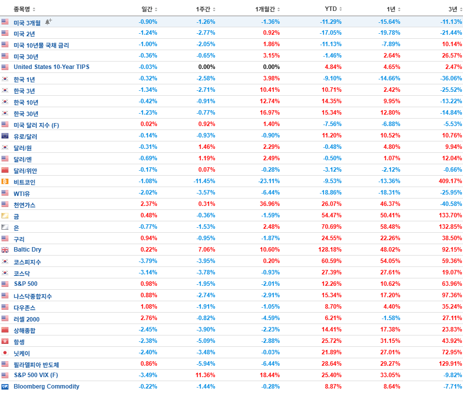 [이번주의 주요 지표 종가]