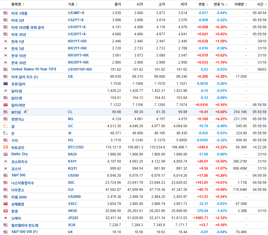 시장의 주요 지표, 20251122