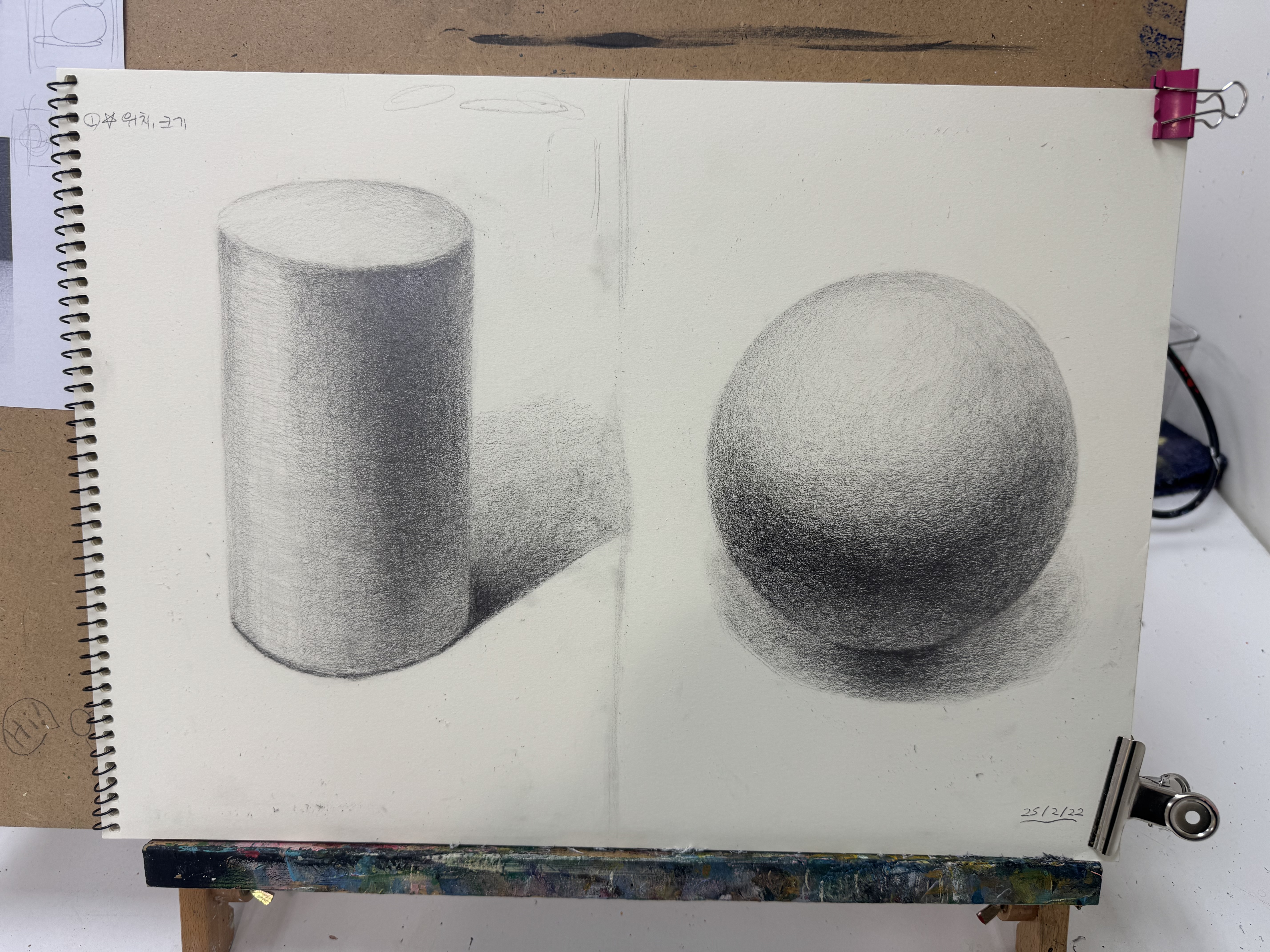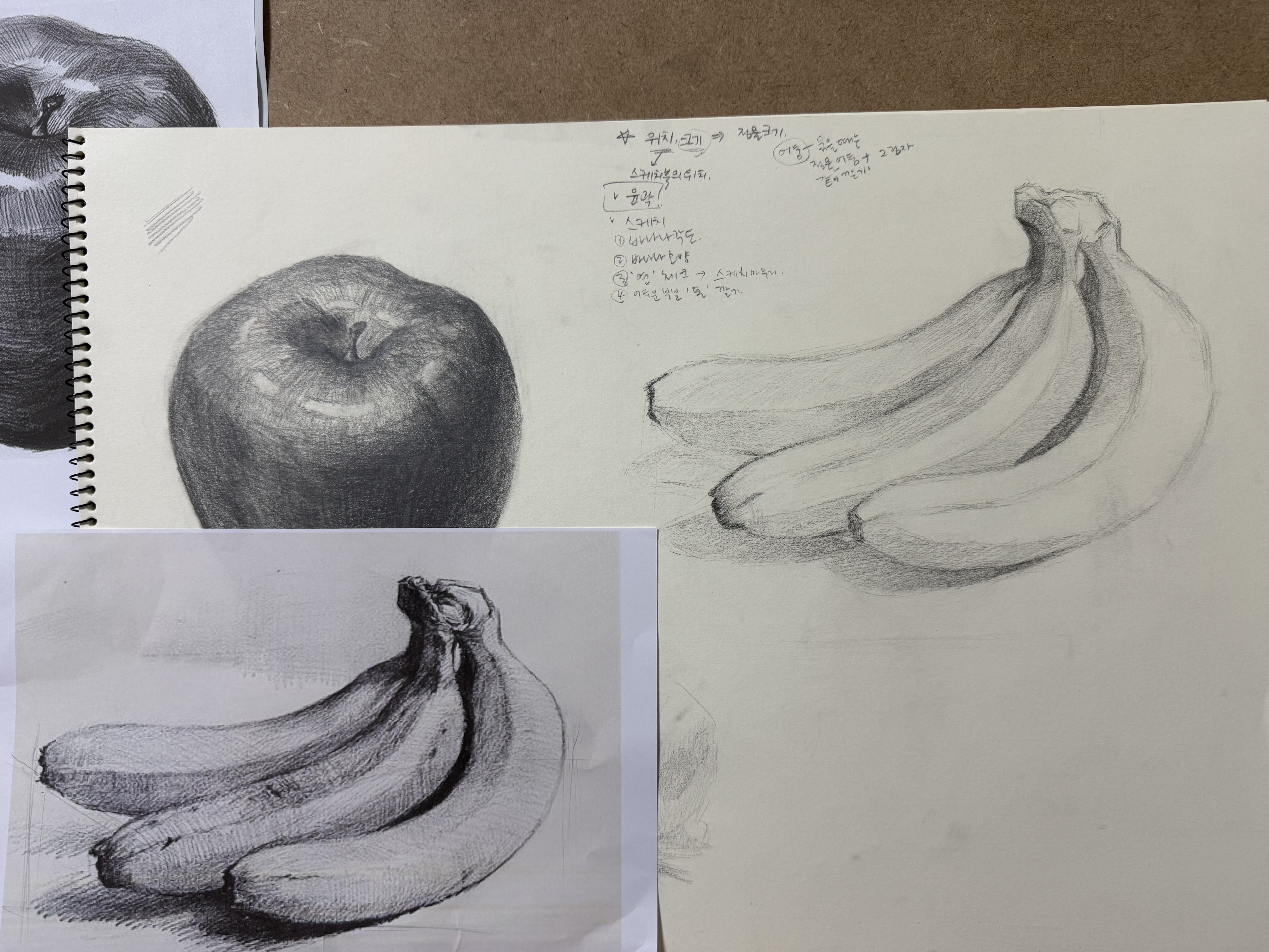 옆에서는 초등학생도 실물을 놓고 그리는데, 나는 왜 계속 프린트만 따라 그리나 하는 생각은 하고 있었음.