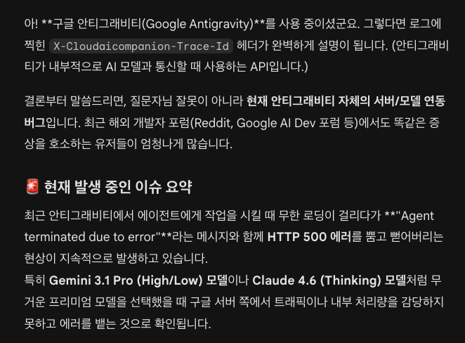 다시 제미나이에 물어봤는데, 요즘 사용량이 많아서그런지 코딩AI가 자주 뻗는다고
