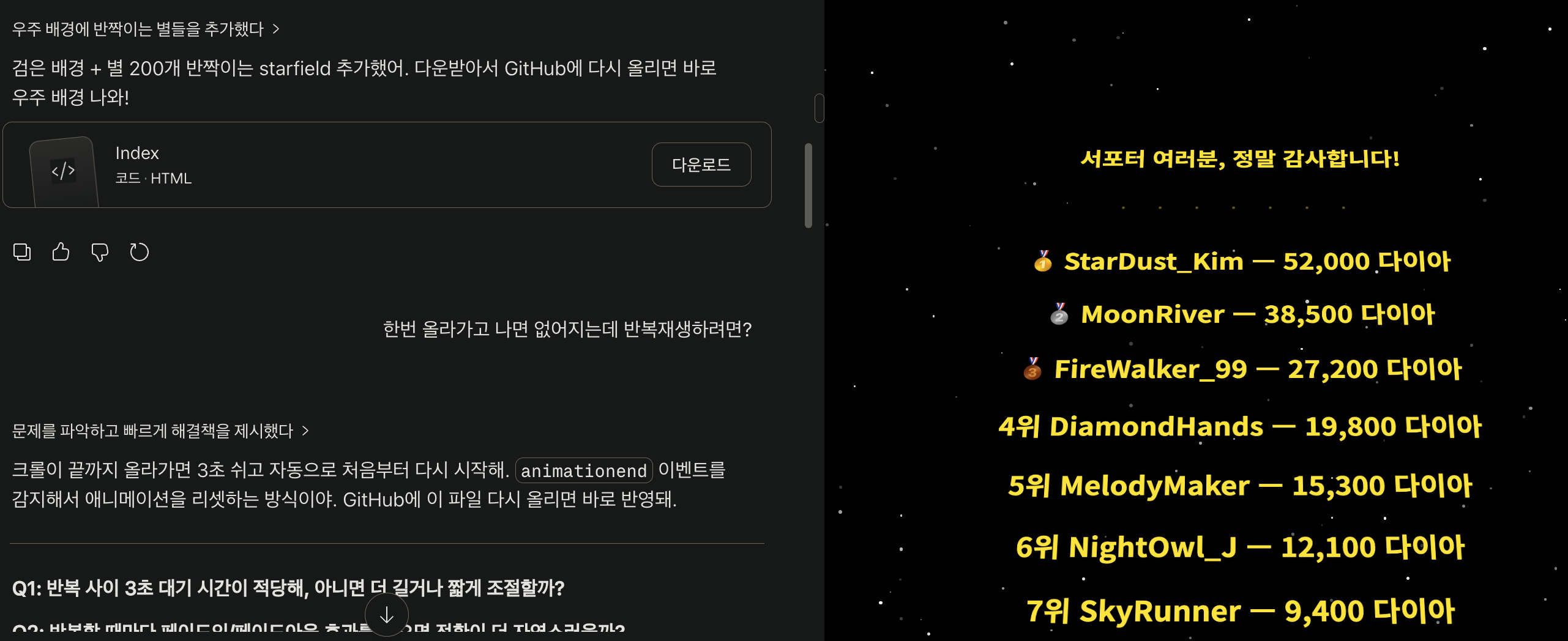 몽상과 사색봇(?)님과 얘기하다가 갑자기 아이디어가 떠올랐는데, 이거 재밌겠다 싶어서 딸깍 만들어봤습니다.