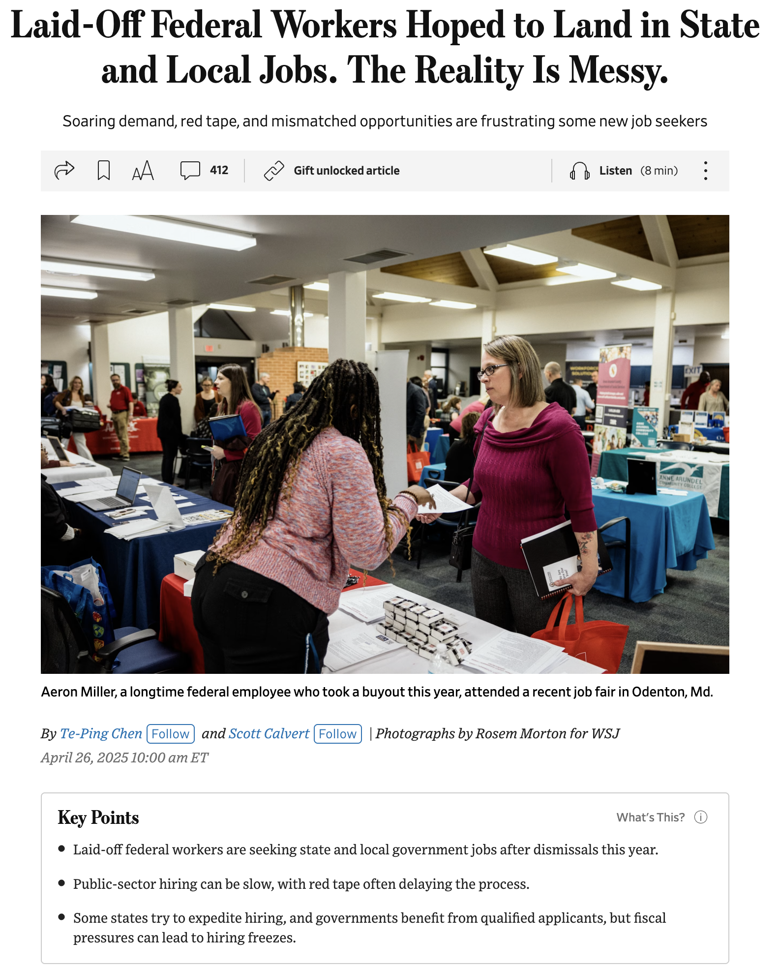 레이오프된 연방공무원 재취업은 쉽지 않은 듯 하나,