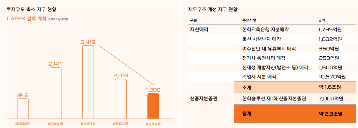 • 한계에 다다르지 CAPEX를 줄이고 1.6조원 자산매각, 신종자본증권 7천억원을 발행함