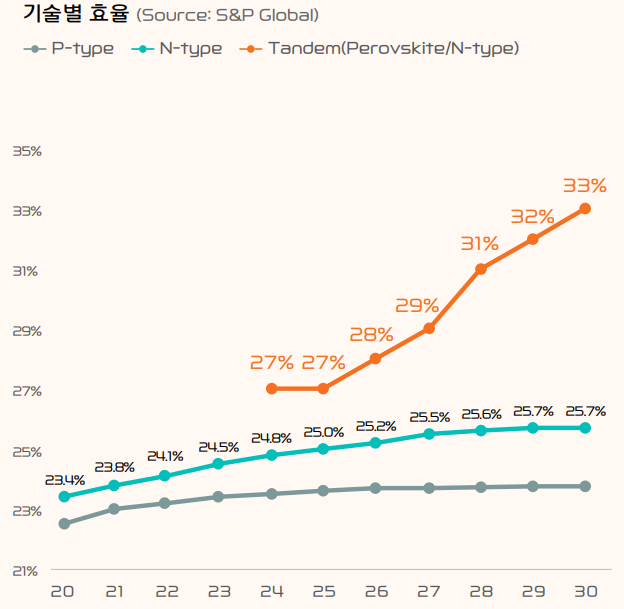 • 문제는 경쟁사를 이길 수 있냐인데 예를 들면 Jinko Solar는 N형 1위 사이기도 하지만 탠덤도 R&D