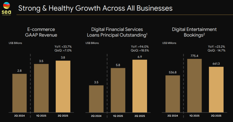 SEA는 신용시장이 부재한 동남아에서 핀테크 사업이 대박이 났다. 또한 E-sports에 투자하고 있다.