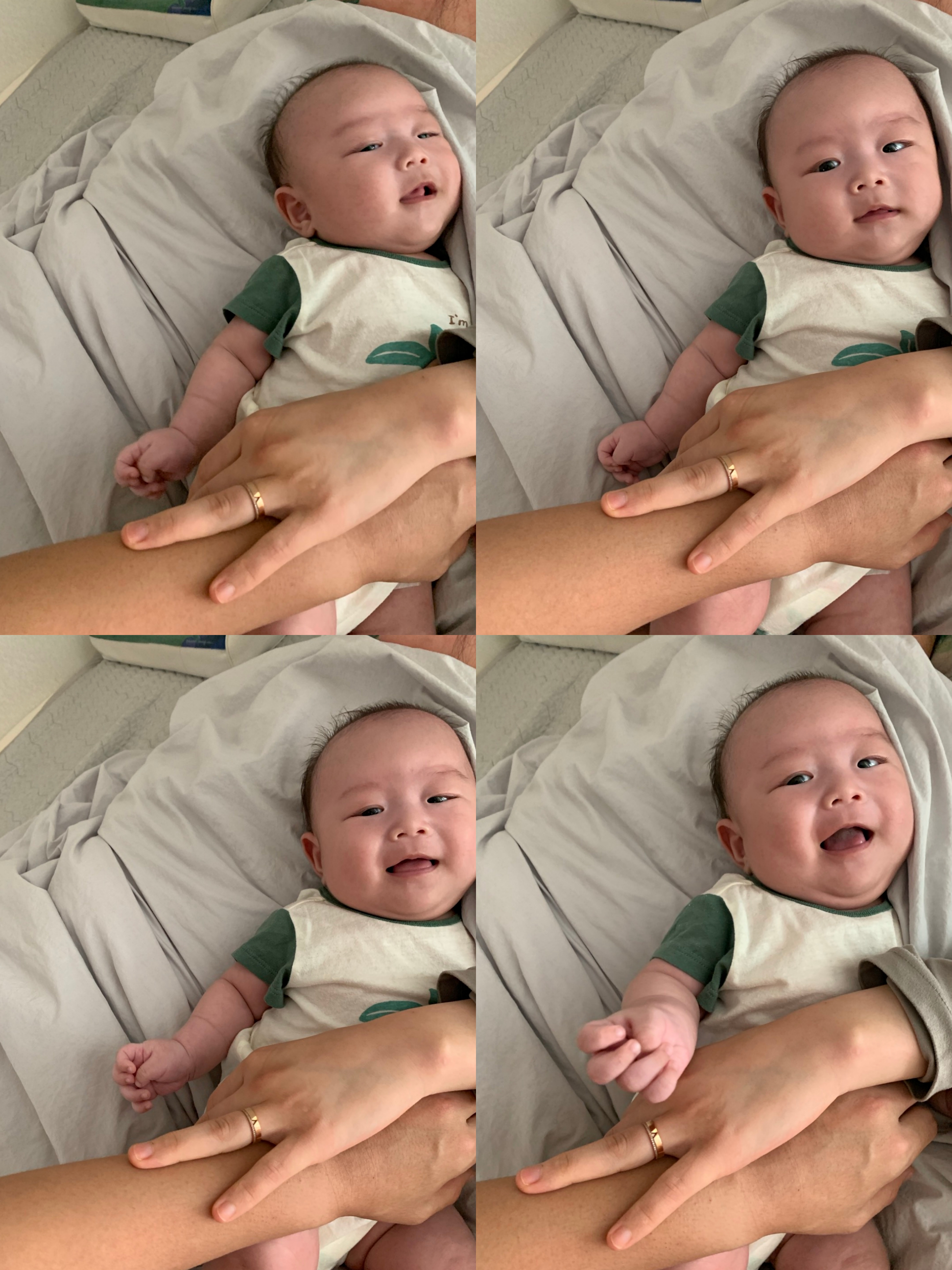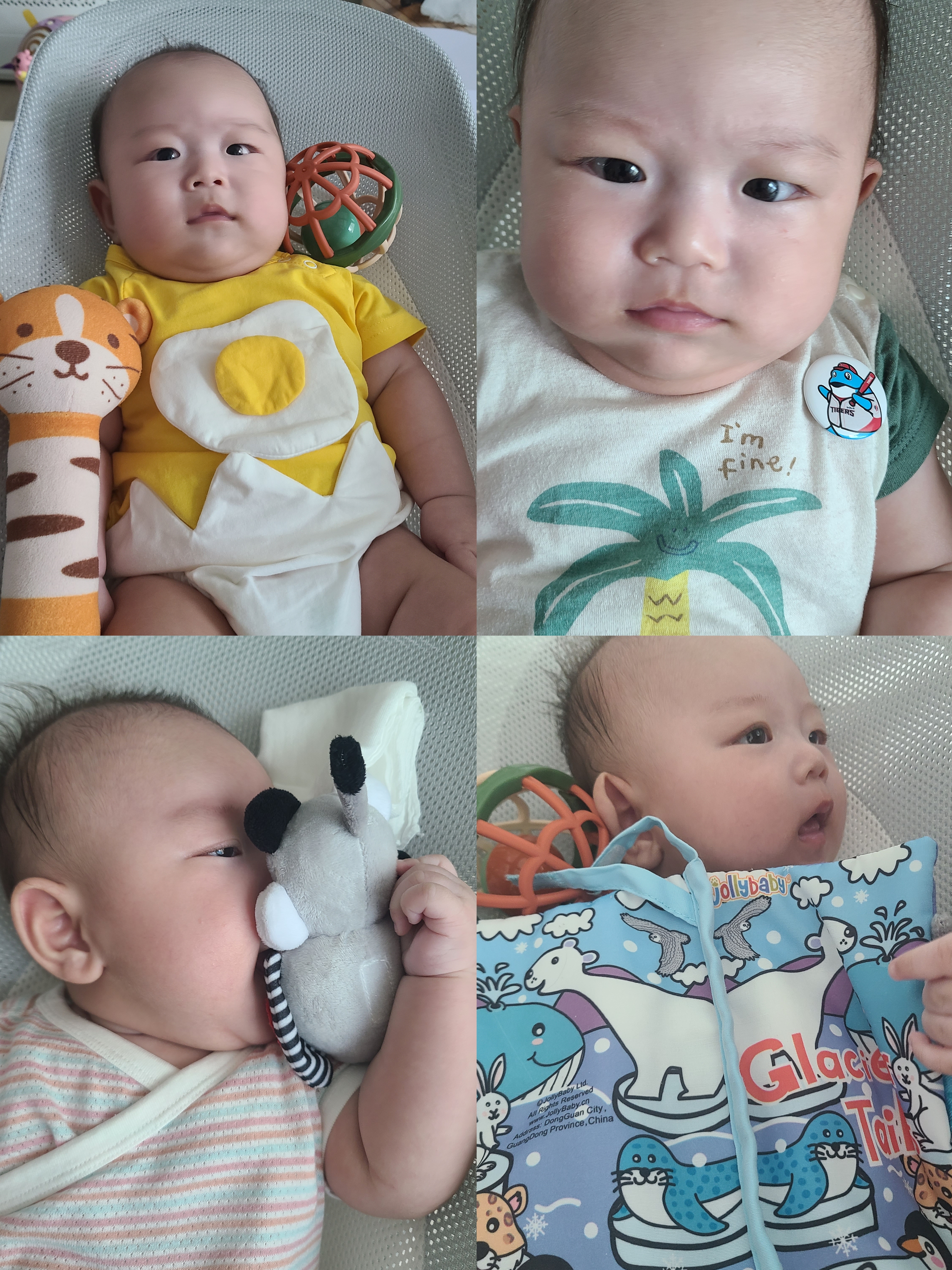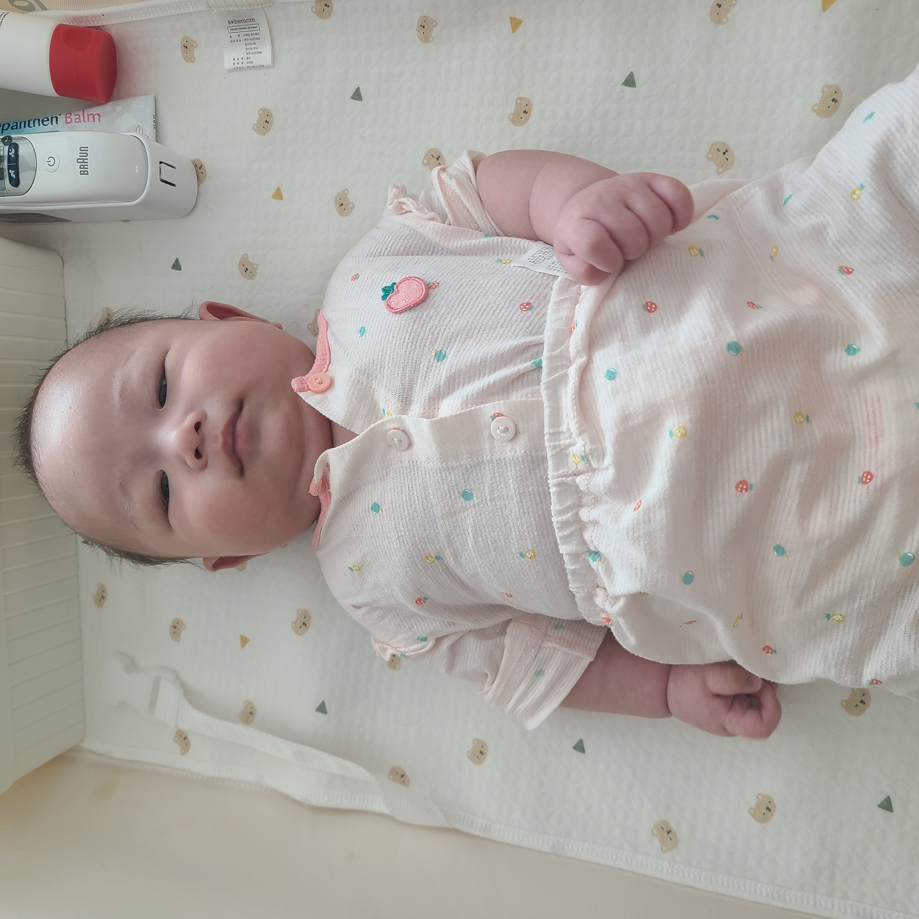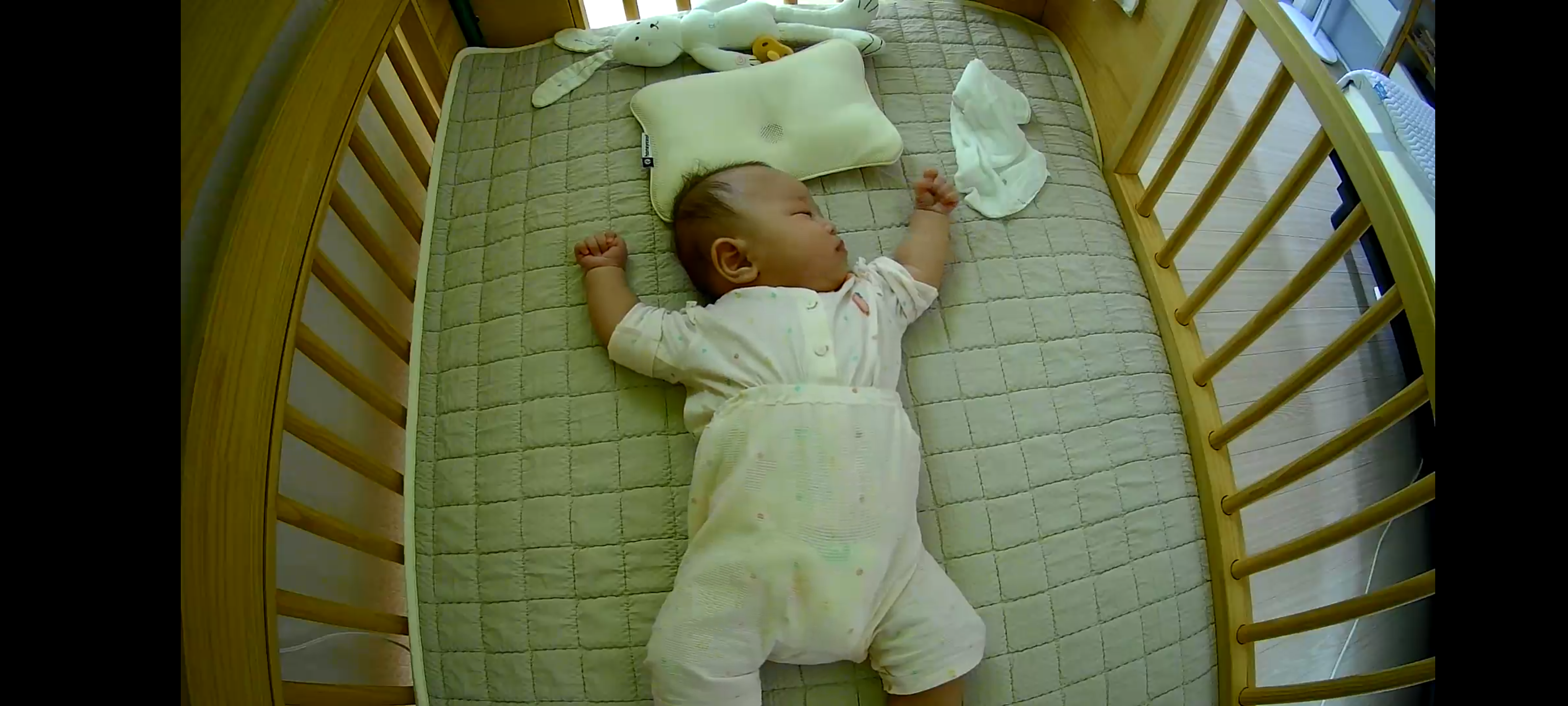 최근엔 밤잠을 잘 때 도구 없이 자고 있다. 성공적인 전환을 한 것 같다. 이제 베개도 빼고 자는 경우가 많은데 예상보다 부작용(울음)이 없었다. 하루 이틀 정도만 고생하고 이제는 그냥 침대에 누워놓으면 뻗는다. CCTV를 통해 바라보면 뒤집기를 하려는지 계속 돌아 눕는 모습이 보인다. 배바지를 한 상태로 누워있는 게 너무 귀엽다. 머리에 사두증이 조금 있어서 위치를 자주 바꿔주라했는데 알아서 좌우로 돌아서 잔다. 단점이 없진 않다. 낮잠을 오래 못잔다. 아직 모로반사가 있어서인지 깜짝깜짝 놀란다. 귀엽다. 자고 일어나면 또 해맑게 웃어주기 때문에 자주 깨도 보는 재미는 있다.