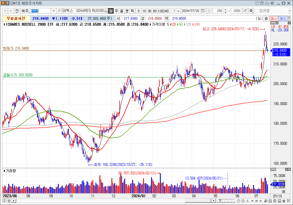 러셀2000(대신 IWM etf 차트 사용함) :