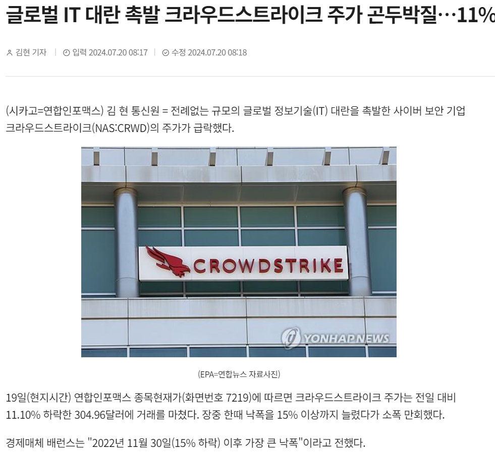 MS 클라우드 서버에 발생한 문제로 IT로 돌아가는 많은 산업에 큰 문제를 일으켰다는 뉴스이다.