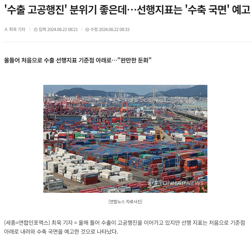 수출 선행지표가 수축국면이라고 한다.