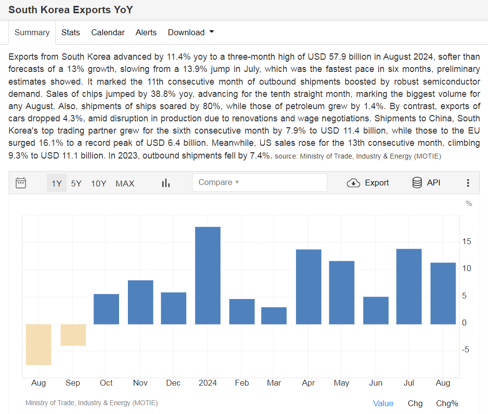 한국 수출 데이터 8월분