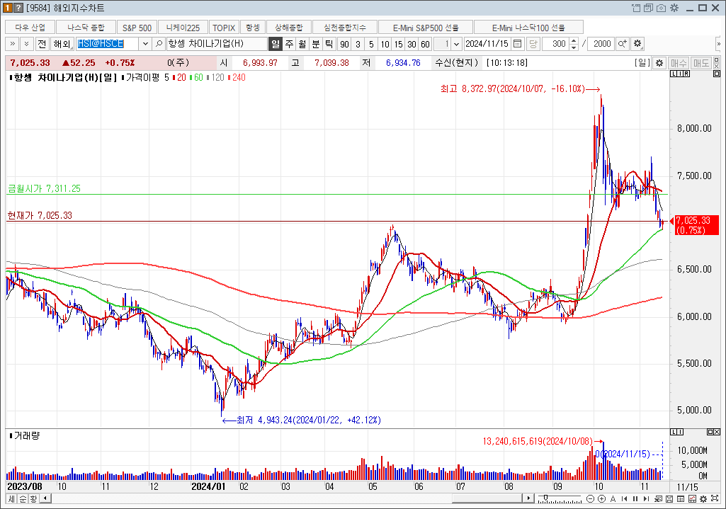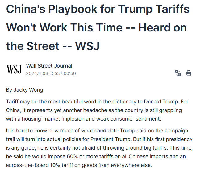 트럼프의 당선과 공화당의 약진(Red Sweep)이 가시화, 아니 현실화(?)되면서 Risk Off mode로 태세 전환한 홍콩과 중국 증시.