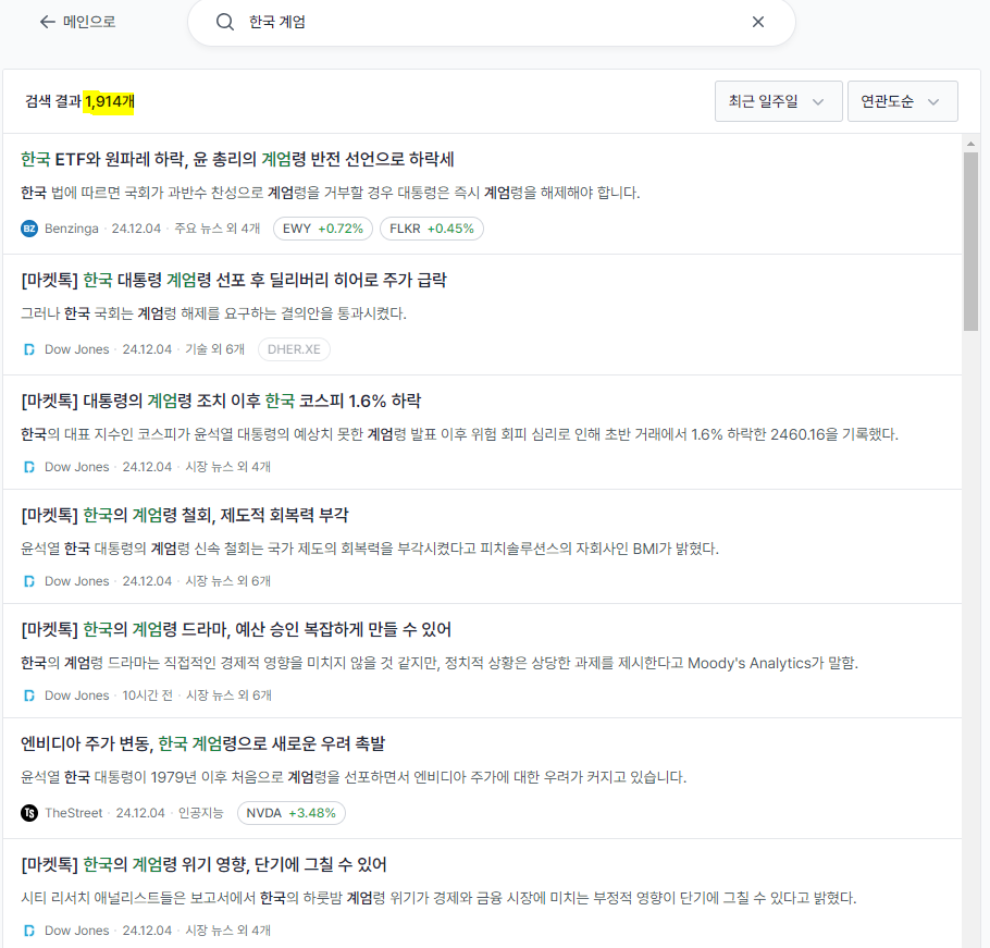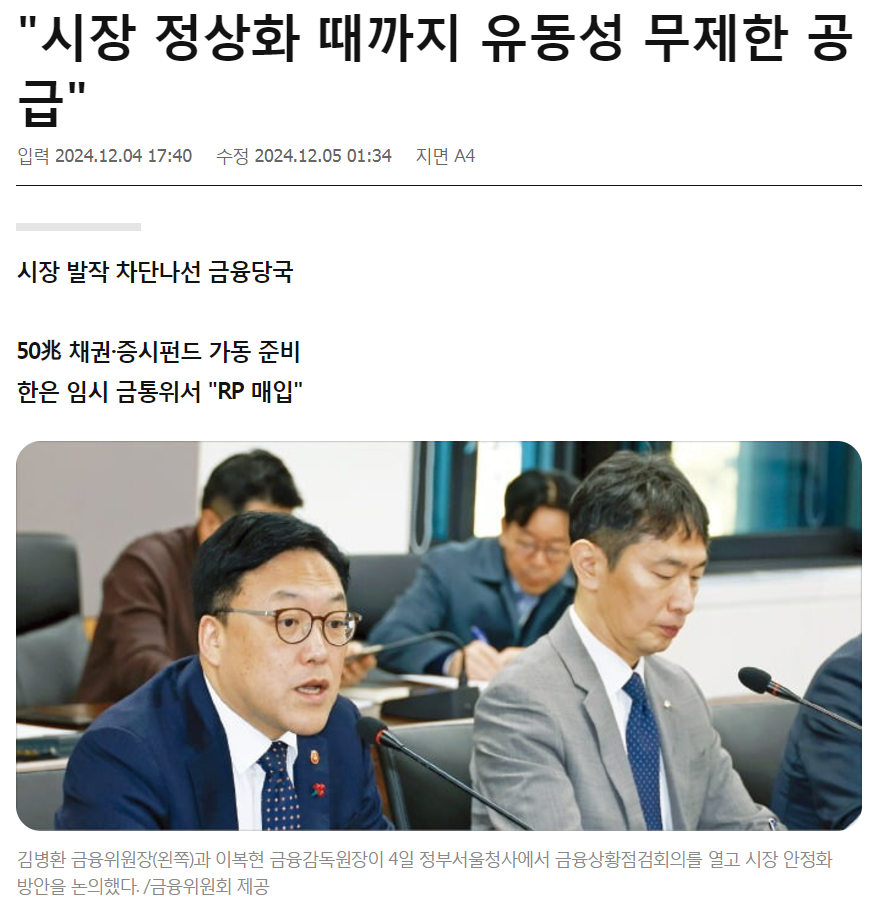 대통령이 비상계엄령을 발동하고 국회에 의해 해제된 지난 4일 새벽 해프닝(??) 직후의 기사들이다.