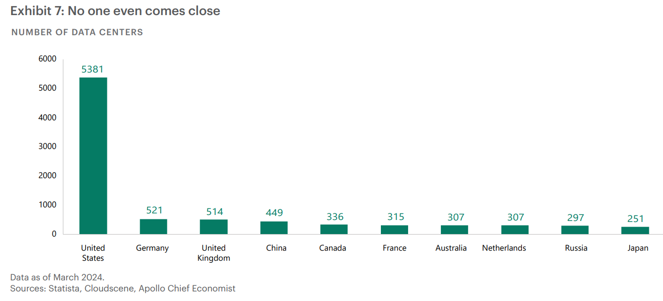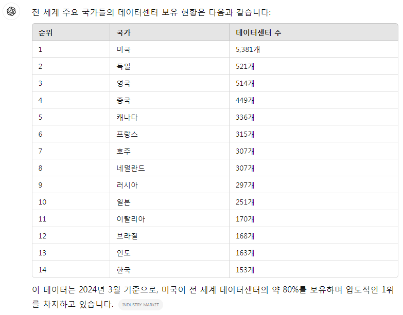 미국의 데이터센터 보유 숫자는 넘사벽... 압도적 우위