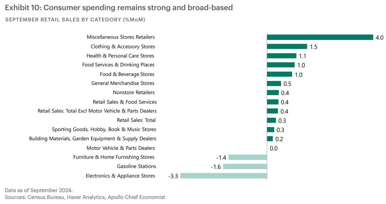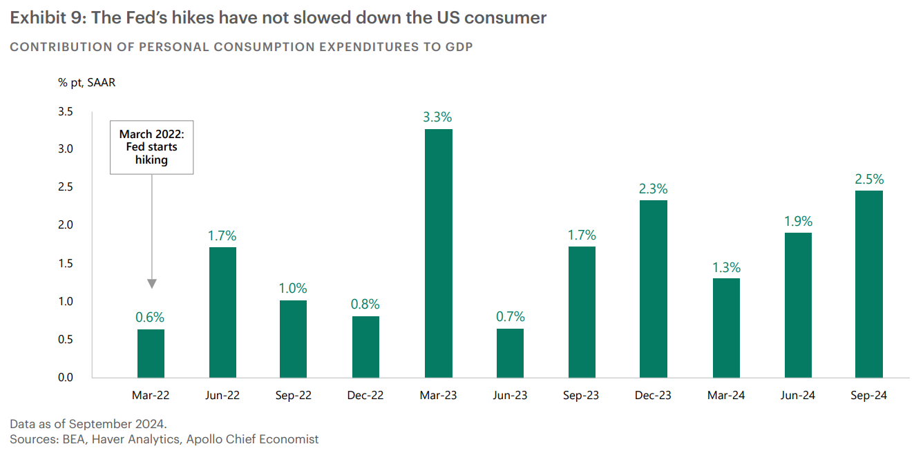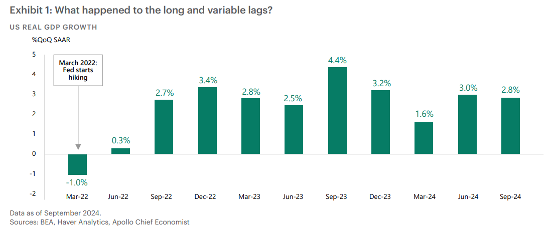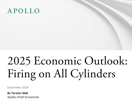 아폴로의 '2025 경제 전망: 모든 엔진이 가동 중' 보고서에 따르면, 미국 경제는 2025년에도 강한 성장세를 유지할 것으로 예상된다. 주요 내용은 다음과 같다: