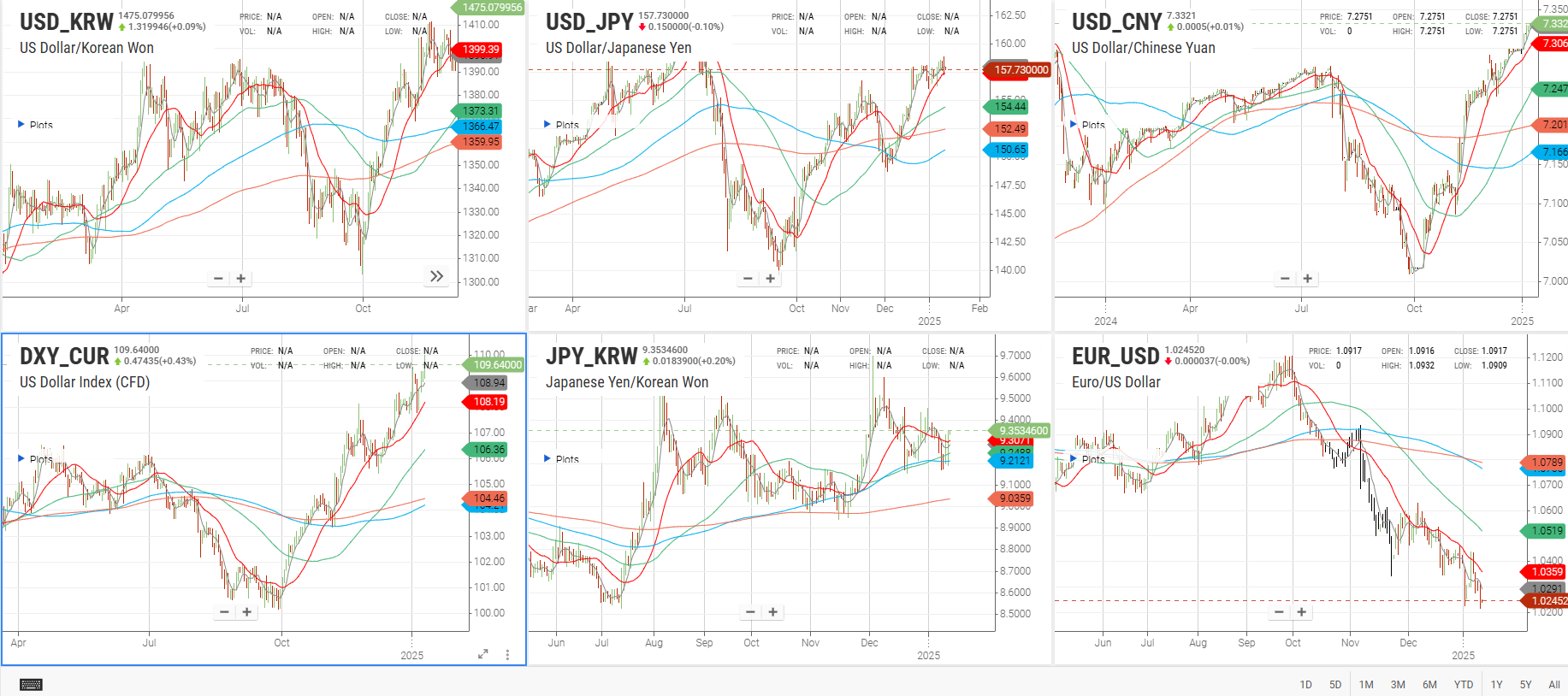다시 주요국 통화를 같이 살펴보자.