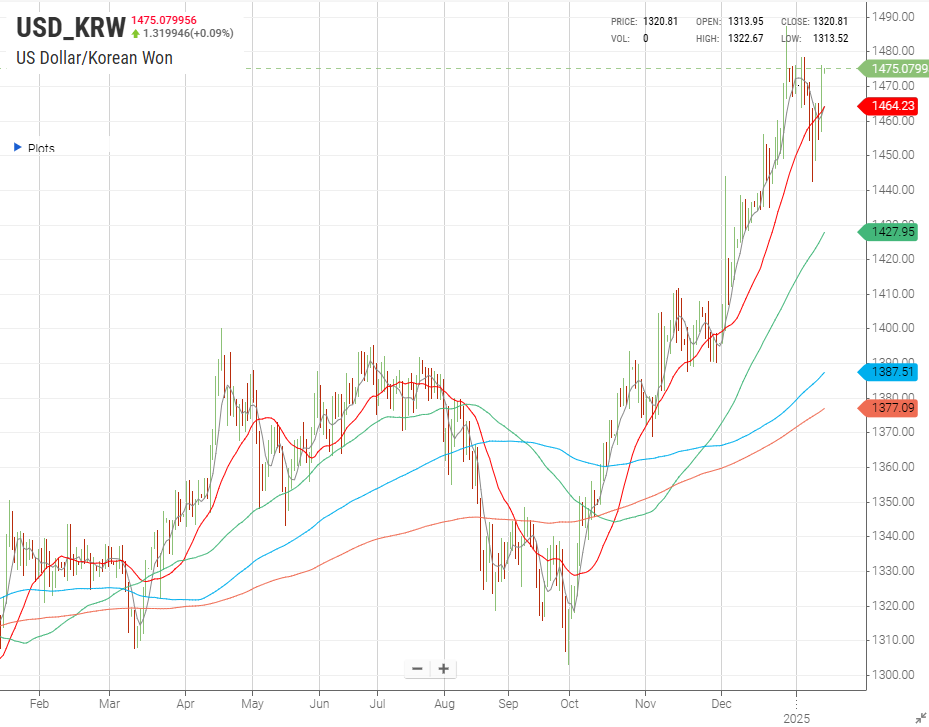 그리고 골드만삭스의 보고서 발표 이후 위 차트에서 보듯이 환율은 재차 급등세를 보이며 12월 27일 전고점을 향해 한 번 더 다가갔다..
