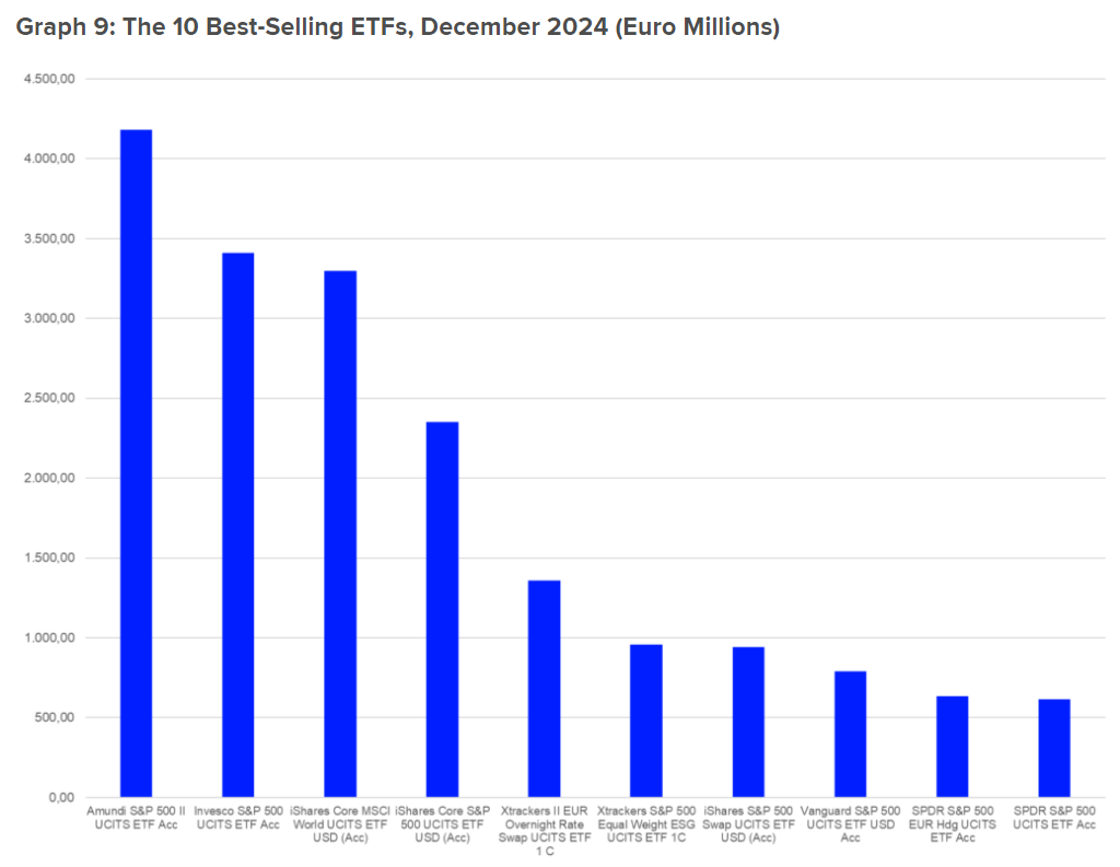 아래 차트에서도 Top10 가장 많이 팔린 ETF에 미국이 대부분이고 다음은 유럽이다.