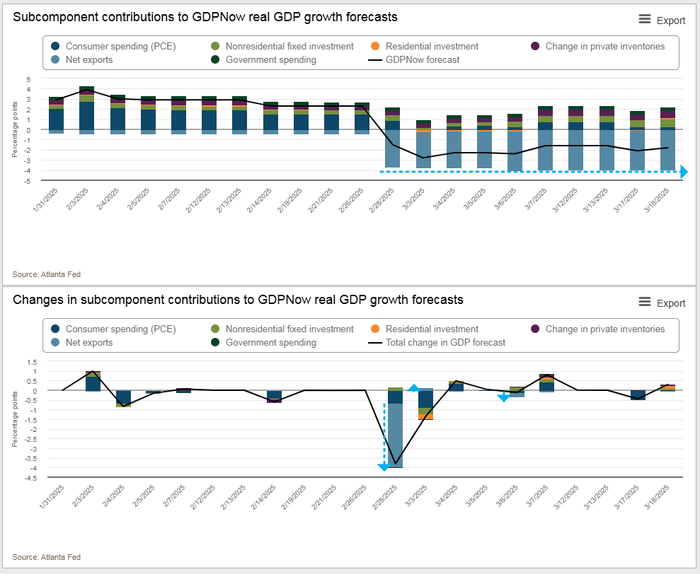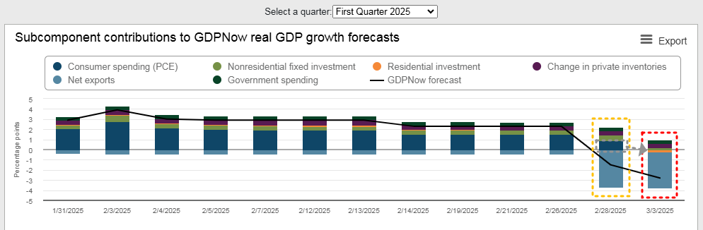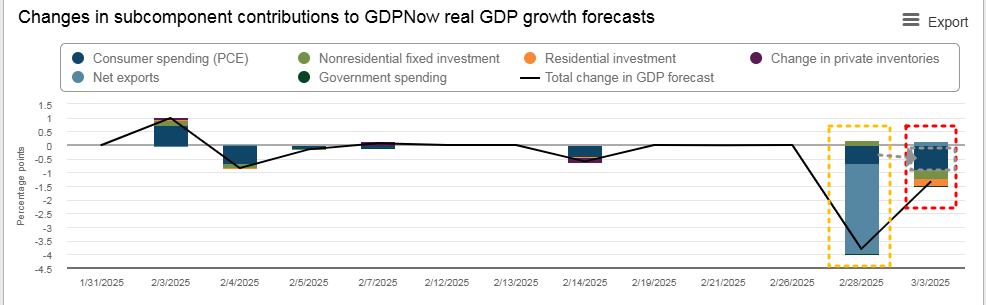 위 포스트에서 이야기한 것이 GDP Now 지수 급락에 가장 큰 기여를 한 것은