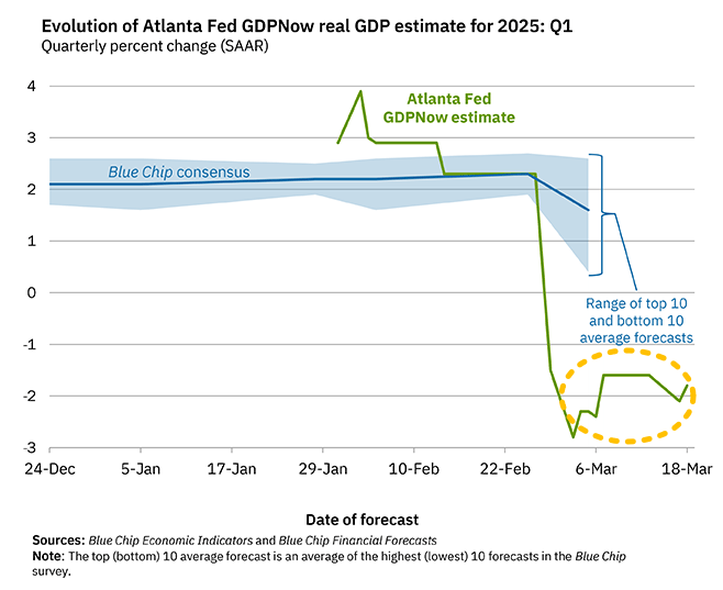 트럼프 정부의 관세 정책이 아직 GDP Now에 영향을 줄 정도로 효과적이지 않거나, 아직 영향을 주지 않고 있거나...