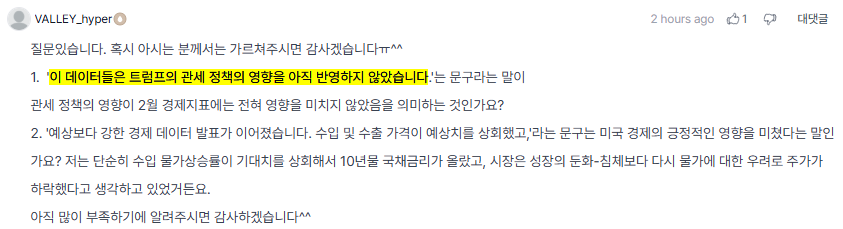 위 칼럼의 시장 요약 부분에 대한 질문이 댓글에 달렸다.