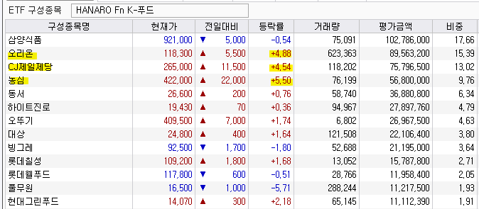 K-푸드 ETF 편입종목 훓어보기
