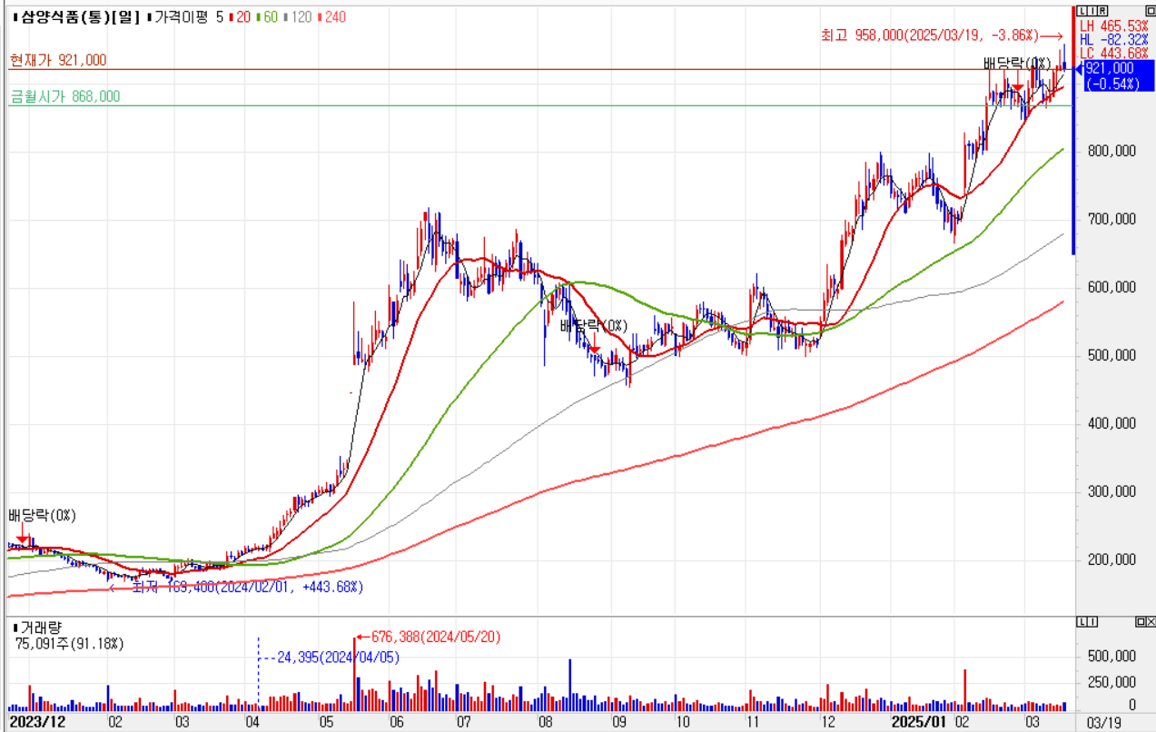 삼양식품을 빼고 비중 상위주 3종목의 상승률이 돋보인다.