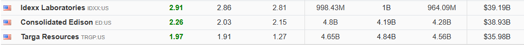 EPS 열에 있는 수치가 노란색이면 miss(미달), 녹색이면 beat(초과)이다.