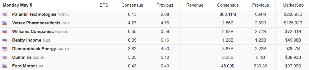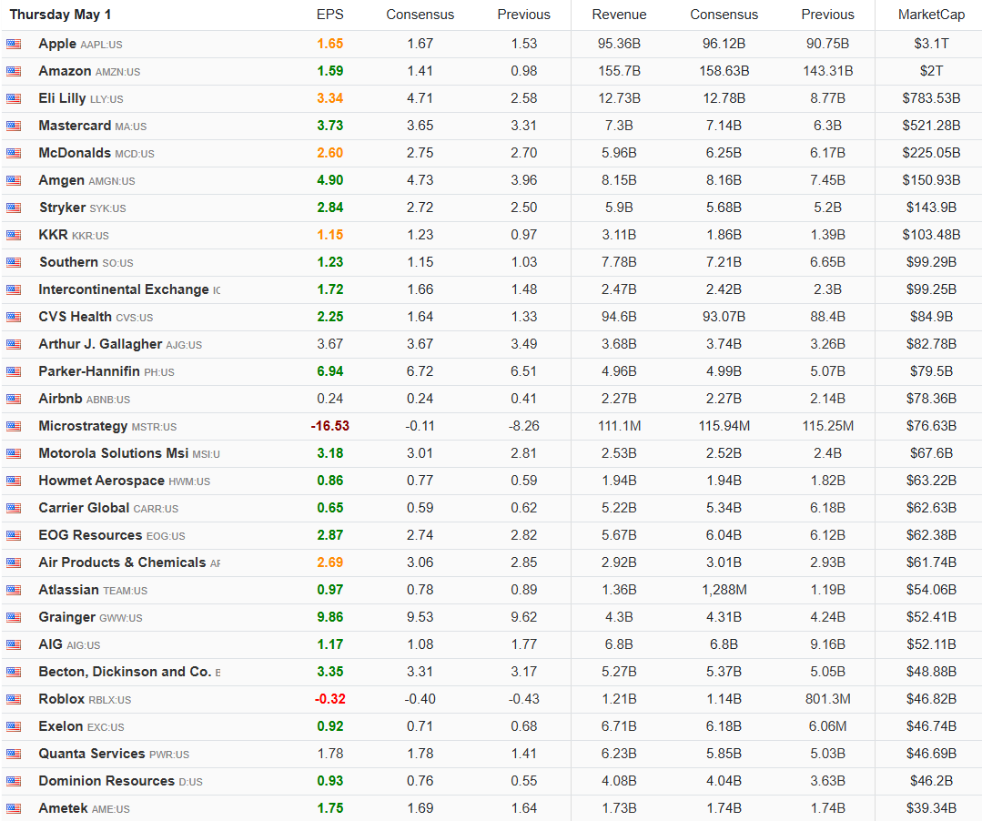 5월 1일에 녹색 표기된 기업실적이 급히 늘었다.