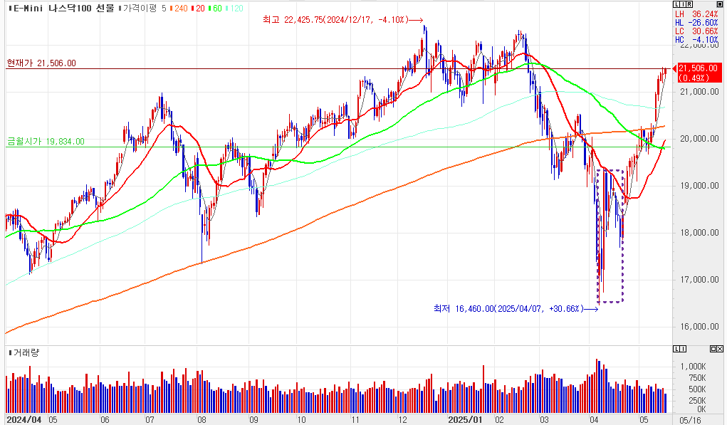 나스닥100 선물도 마찬가지로 급등의 성격이 달라졌다.