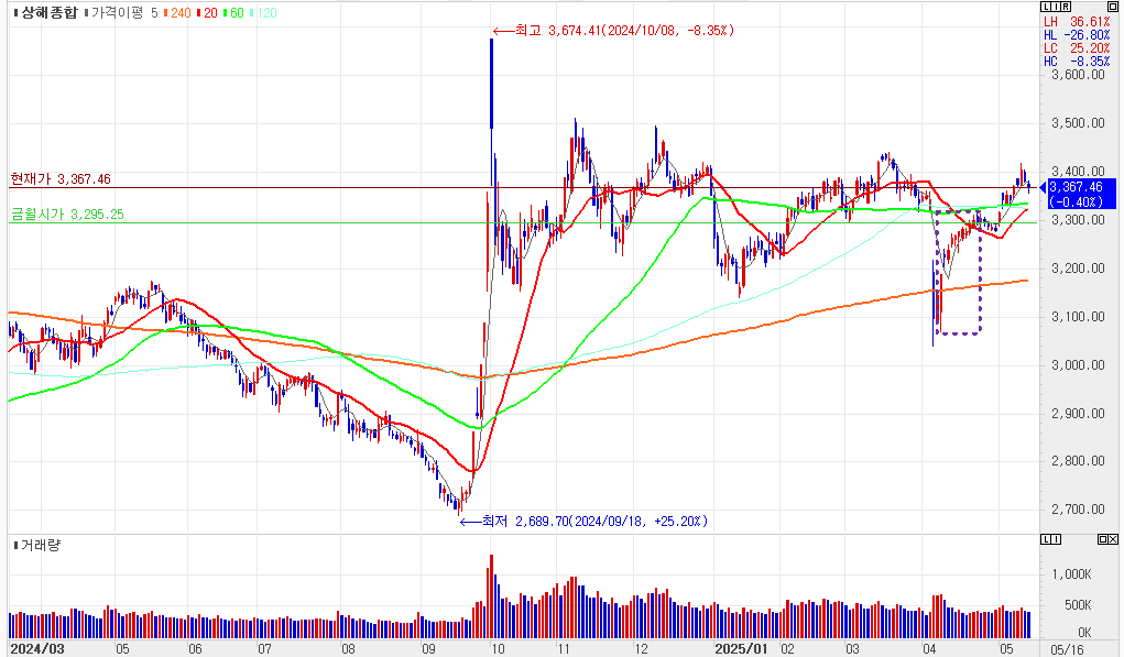 상해종합지수는 지난 10월 이후 비교적 좁은 박스권에서 등락을 거듭하고 있다.